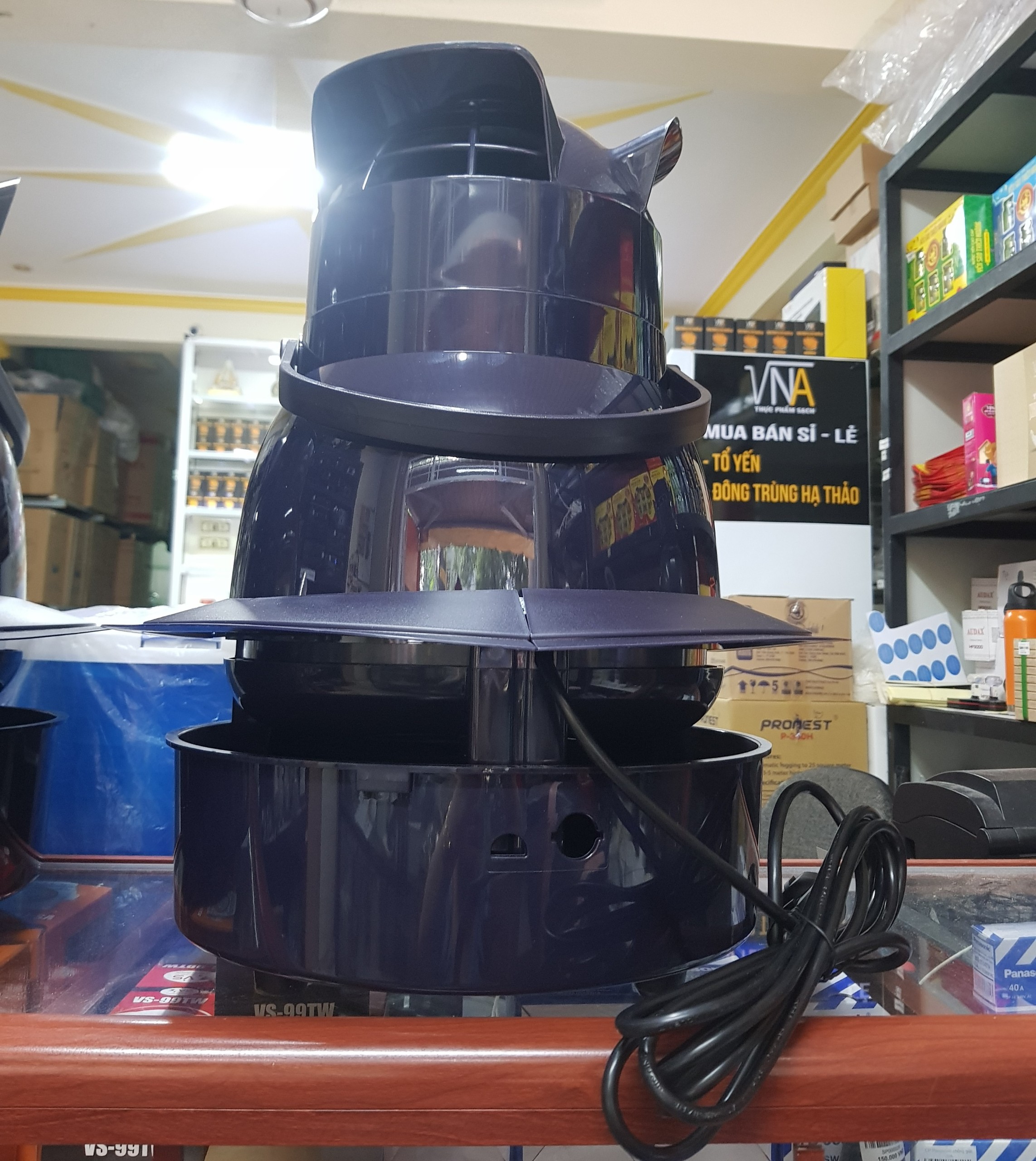 Mua tại TiktokThông số Nặng: 7,6 Kg Chất liệu: nhựa nguyên chất Phụ kiện kèm theo: 1 nón 3 hướng , 1 nắp lưới, 1 bộ chắn, 1 phao Công dụng: chuyên dụng cho nhà yến diện tích nhỏ, phòng khử trùng, làm ẩm trong nhà, nhà máy dệt, xưởng máy, các xưởng dêt nhà kho, dùng trong các vườn, nông trại chăn nuôi , trông trọt, các lò bánh mì, Ưu điểm: