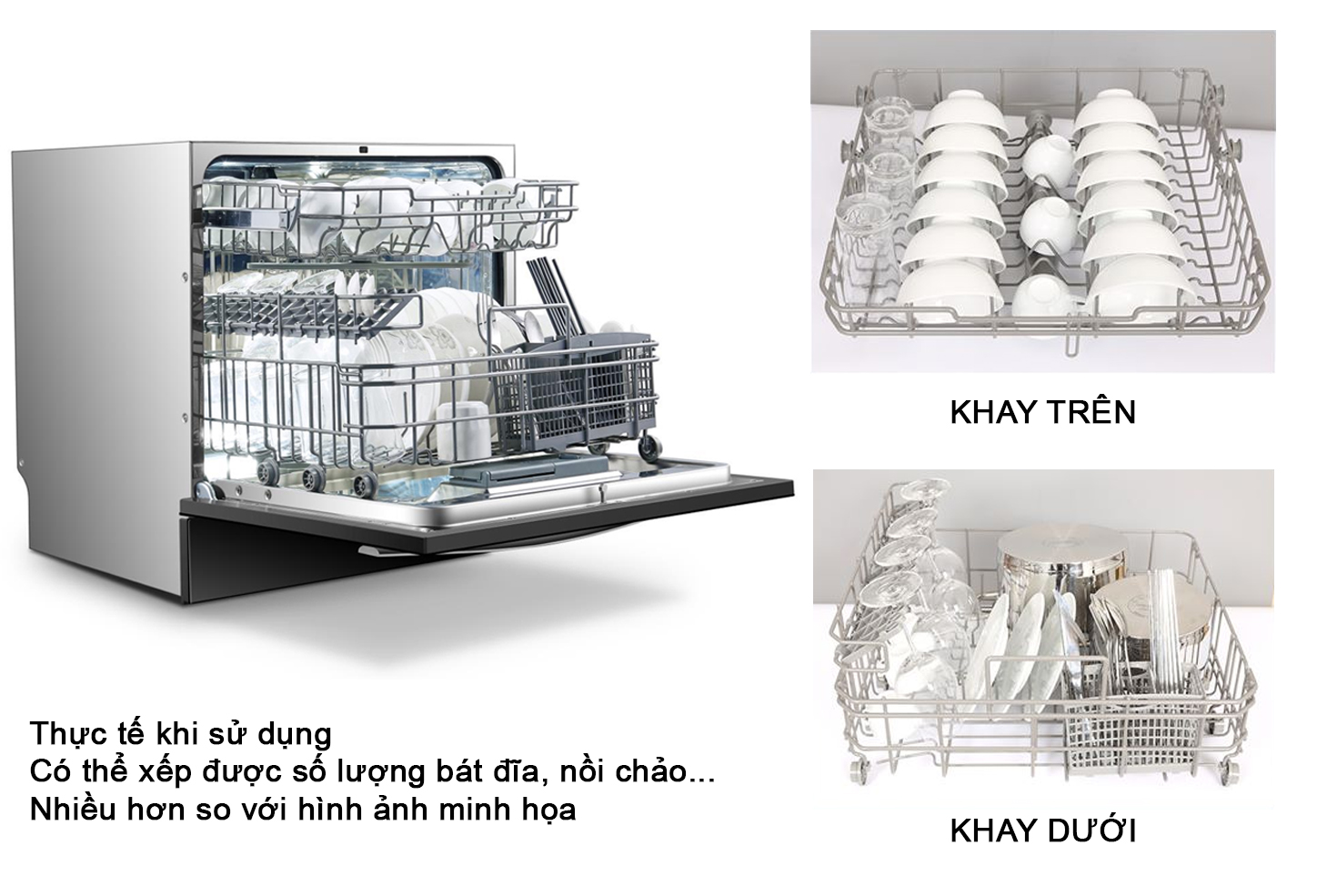 • Sức chứa 08 bộ đồ ăn Châu Âu