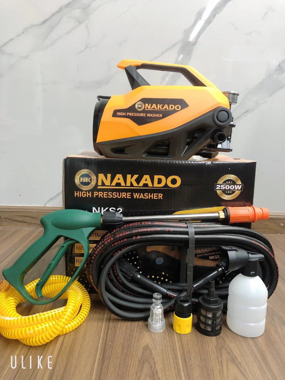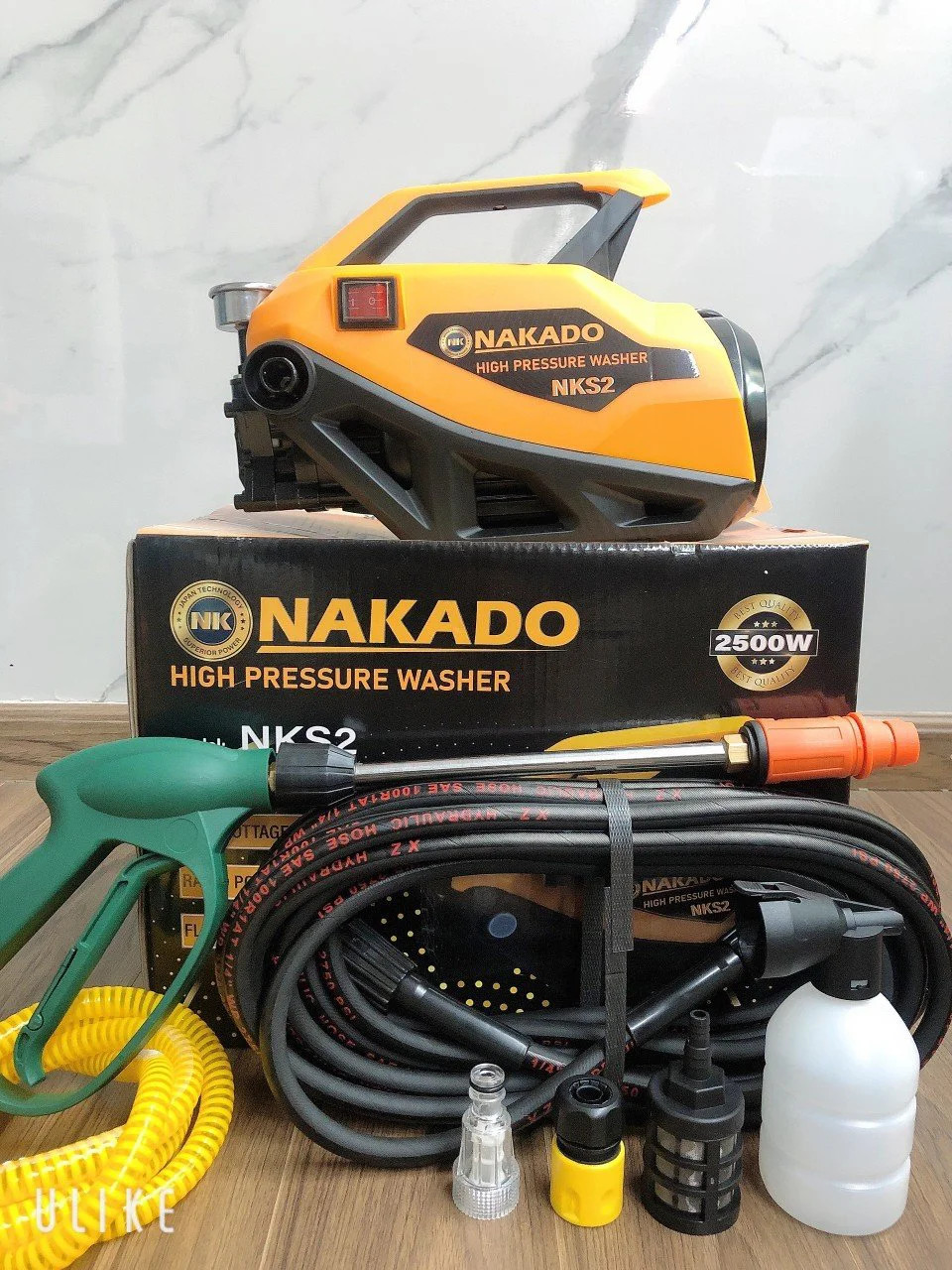 MÁY RỬA XE NAKADO 2500W 100% DÂY ĐỒNG được sản xuất theo công nghệ Nhật Bản, máy có thiết kế gọn nhẹ, đẹp mắt, dễ dàng cầm, xách đi mọi nơi. Máy được trang bị mô tơ lõi đồng cảm ứng từ chạy êm, ít ồn, bền hơn các loại chổi than cũ, máy rửa xe tự động, khi không bóp máy sẽ dừng hoạt động. Máy rửa xe gia đình mini phù hợp rửa xe, rửa sân, kho bãi, rửa máy lạnh….
