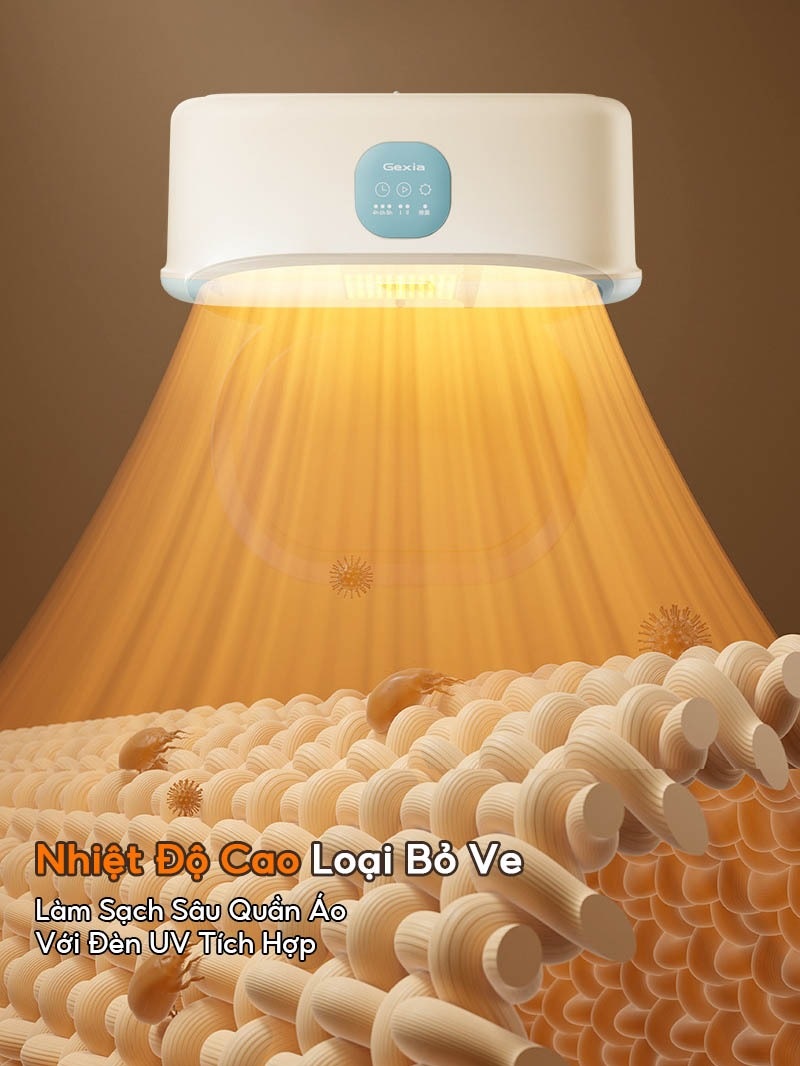 Sấy nhanh, Diệt khuẩn và mạt. Hai chế độ làm nóng PTC và gió nóng tuần hoàn 360° Thiết kế nhỏ, thuận lợi nhưng hiệu suất sấy cao. Có đèn UV để diệt khuẩn đạt