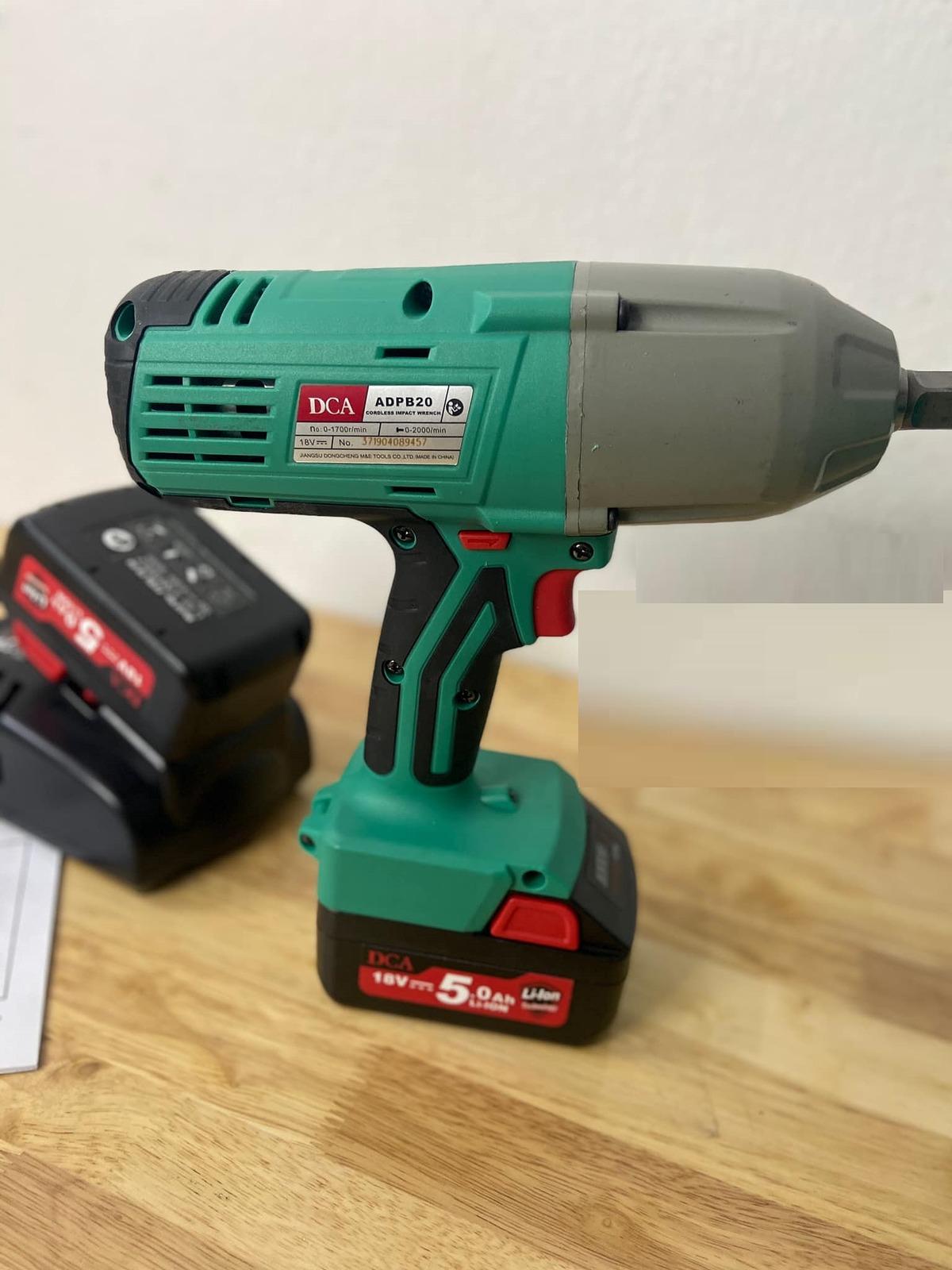 Máy siết bu lông pin 18V DCA ADPB20F được tặng kèm 2 pin 18V – 5.0Ah và vali khi mua tại . Máy nặng khoảng 3.2kg giúp người dùng sử dụng trong thời gian dài mà vẫn không bị mỏi tay. Đây là bộ sản phẩm đến từ hãng DCA của Trung Quốc được ưa chuộng tại Việt Nam bởi giá thành rẻ, thiết kế đẹp. Đồng thời đây cũng là hãng lớn thuộc TOP 5 hãng sản xuất máy móc dân dụng có chất lượng sản phẩm thông qua quy trình chế tạo nghiêm ngặt, đạt tiêu chuẩn quốc tế nhằm đem đến những trải nghiệm sản phẩm tuyệt vời nhất cho người tiêu dùng. Máy siết bu lông DCA ADPB20F có lực xiết tối đa lên đến 650 N Tốc độ không tải đạt 1700 vòng/phút; tốc độ đập đạt 2000 lần/phút. Thiết bị DCA ADPB20F hỗ trợ siết bu lông với công suất lớn cho khả năng siết hiệu quả. DCA ADPB20F có khả năng siết các đường kính mũi từ M16 đến M20.