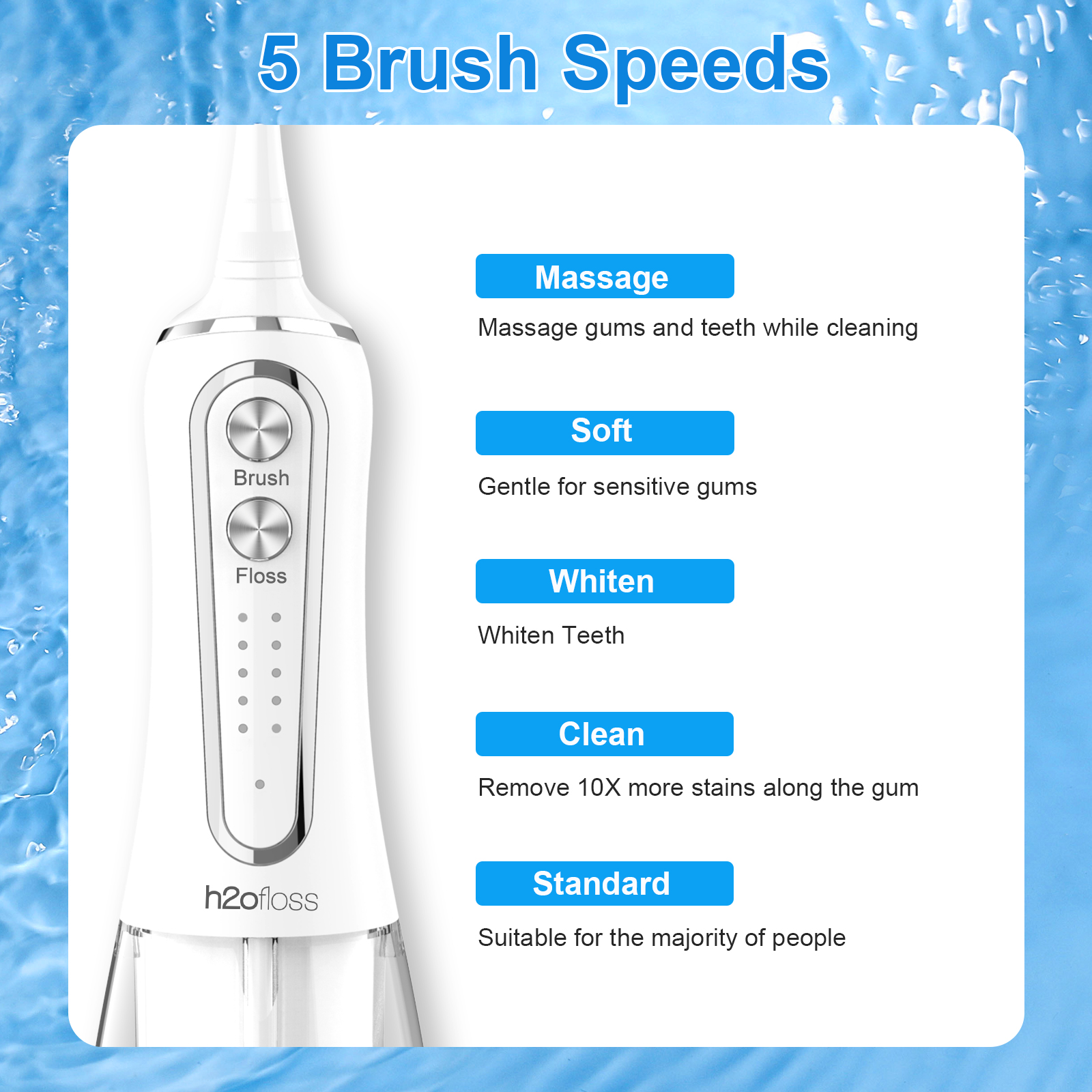 Hệ thống kép vận hành độc lập với 5 chế độ của tăm nước và 5 chế độ của bàn chải.