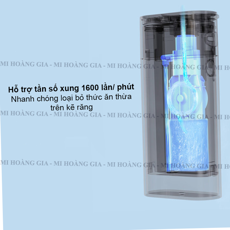 Thông số kỹ thuật - Loại máy Dùng pin - Dung tích bình nước 300ml - Số đầu tăm 6 đầu - Mức độ phun 5 - Chống thấm nước IPX7 - Tốc độ xung1.600