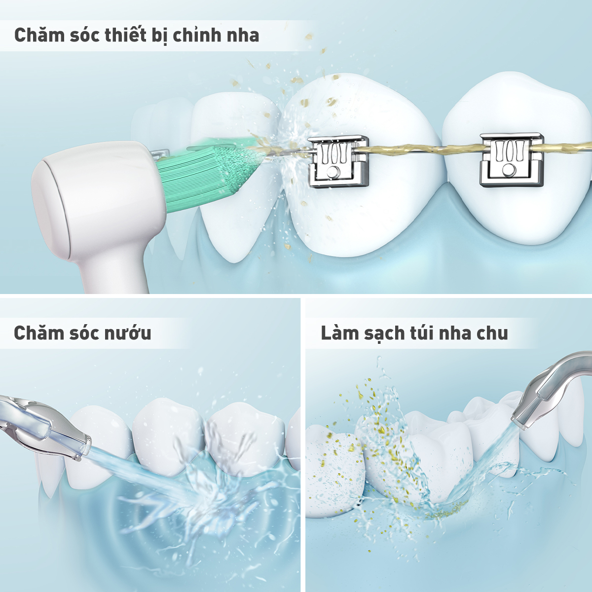 Máy tăm nước chuyên dụng MAXVI - Chăm sóc răng miệng khi chỉnh nha tuyệt vời nhất Với vòi xịt chuyên dụng, người dùng sẽ được làm sạch ngay cả các khe nhỏ nhất dưới