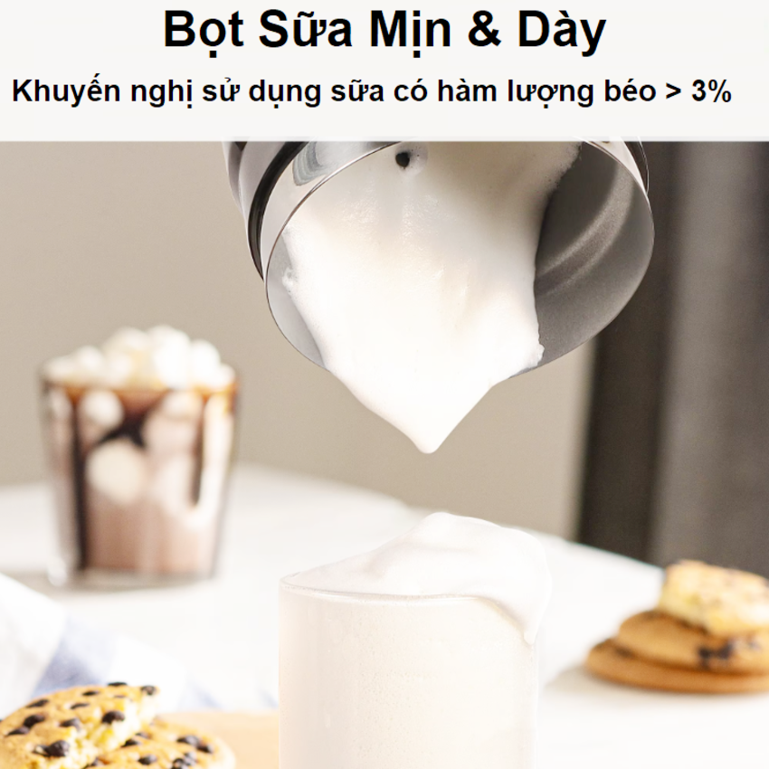 - Máy có thể tạo bọt sữa đặc nóng, bọt sữa nhẹ nóng, bọt sữa lạnh, hâm nóng sữa và pha sô-cô-la nóng. Bạn có thể thưởng thức những ly cà phê chuẩn vị ngay tại nhà chỉ trong vài phút. Dung tích lớn