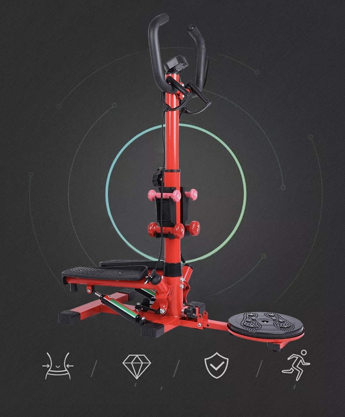 ✨Máy tập thể dục đa năng TT02, máy tâp leo núi kết hợp xoay eo, dây kéo đàn hồi tập tay kèm bộ tạ tay cho chị em tập tại nhà tiện lợi