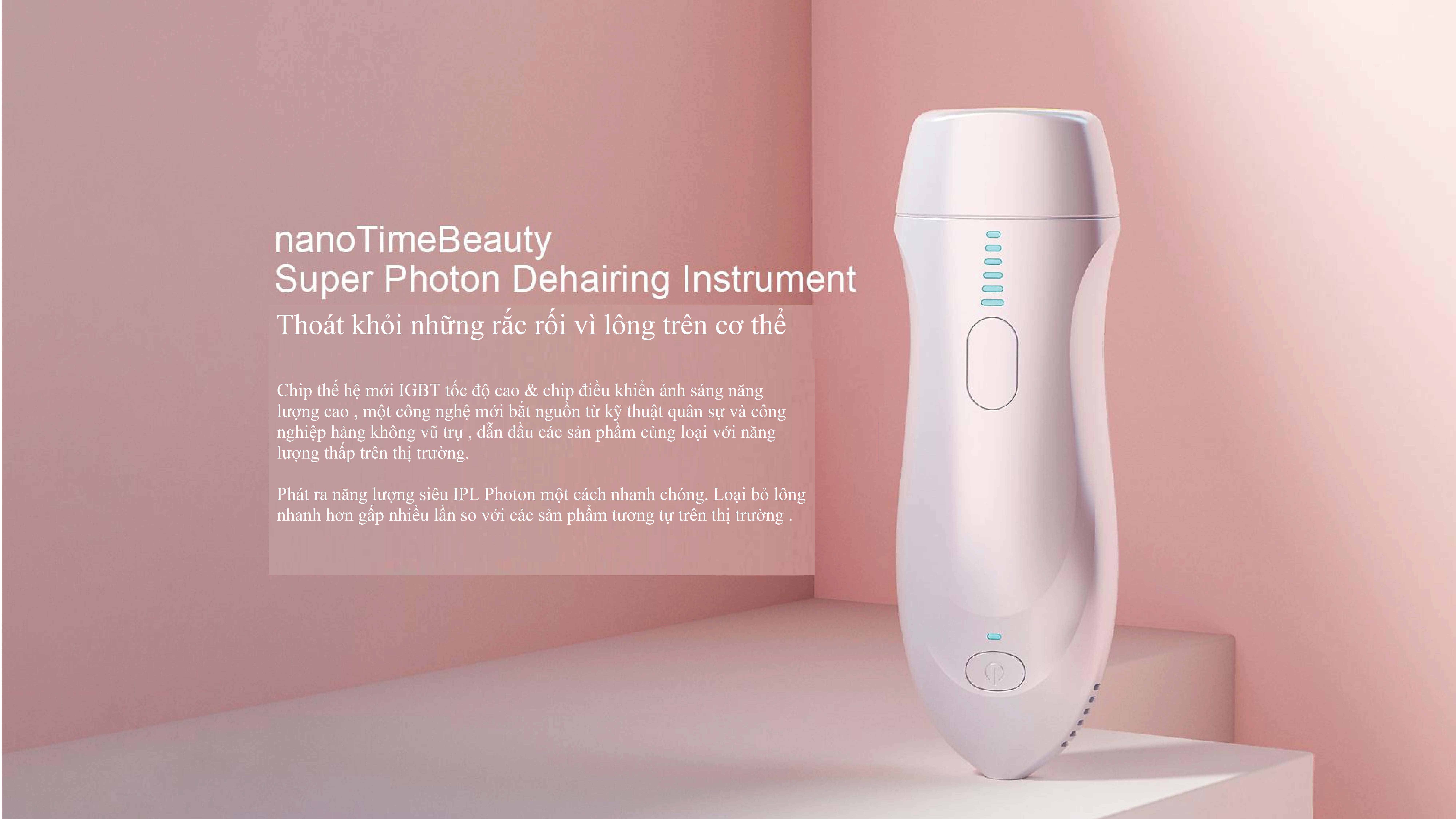 - NanoTime Beauty B62F là một trong những mẫu máy triệt lông sử dụng công nghệ triệt IPL Super Photon hiệu suất cao.