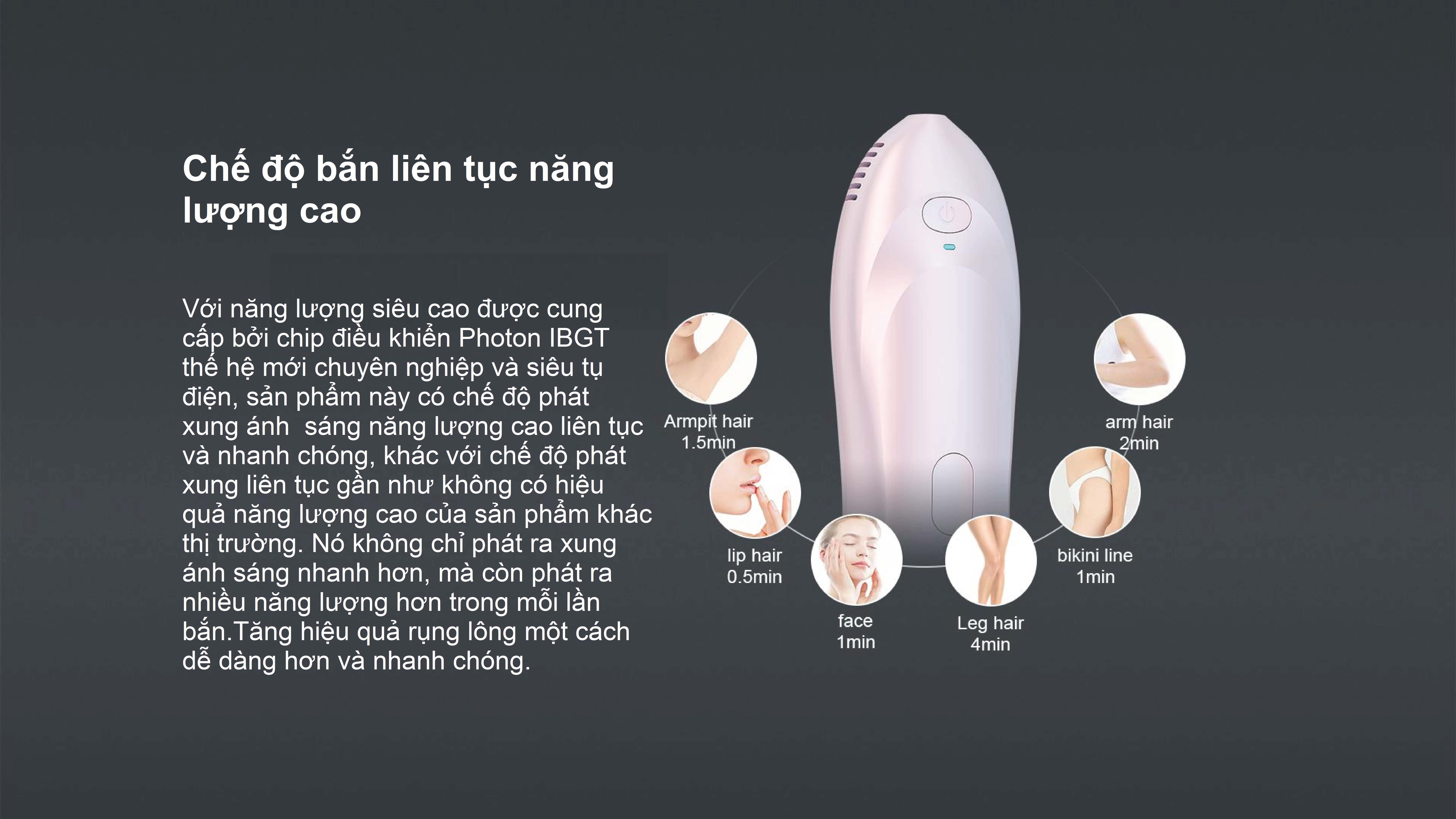- Máy có tới 500.000 lần xung cùng chip IGBT năng lượng cao cho thời gian sử dụng lâu dài.