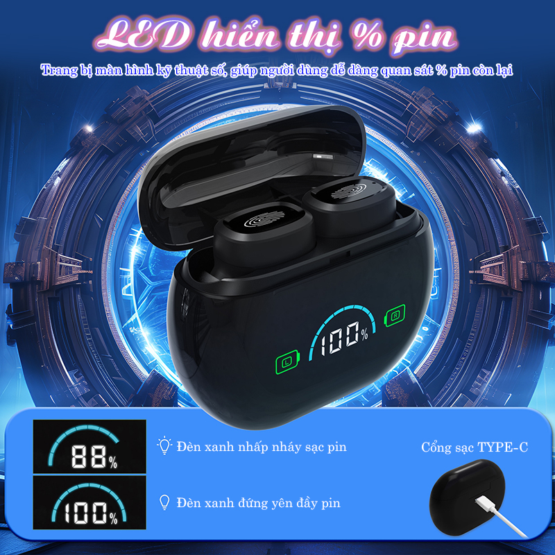 Khi sạc pin: màn LED sẽ hiển thị % pin đang có và đèn xanh dương sẽ sáng nhấp nháy.