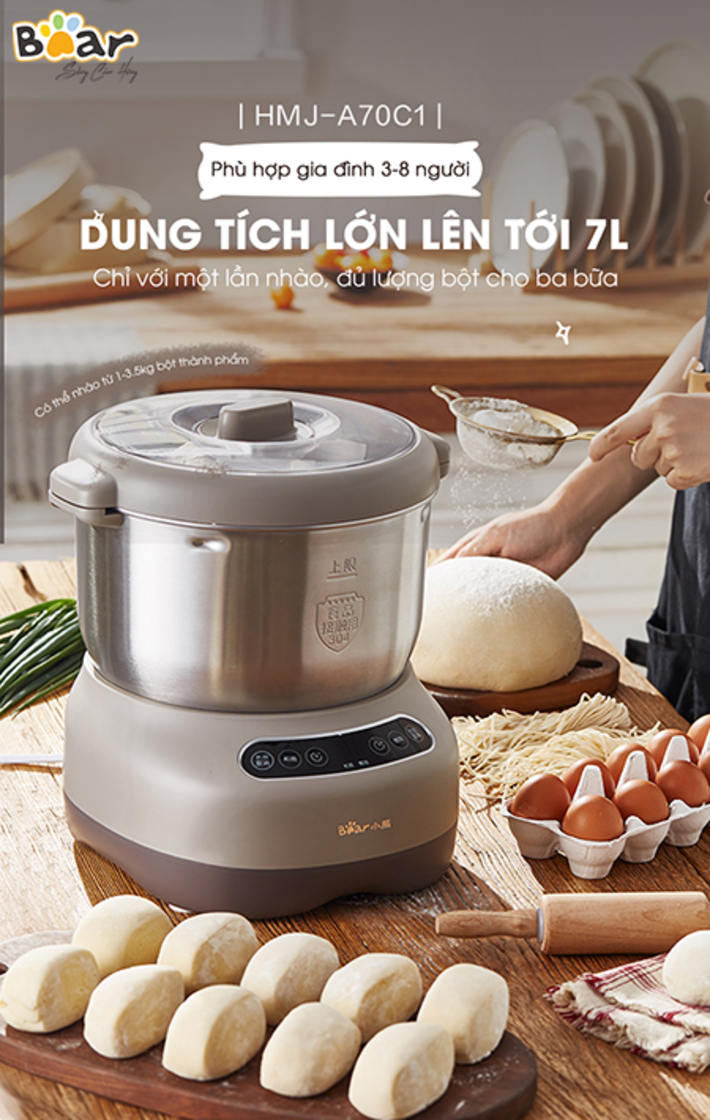 Máy nhồi trộn bột Bear 7L nhào bột, ủ bột tự động, âu trộn thép không gỉ – Hàng chính hãng bảo hành 18 tháng 6 Lý do nên mua MÁY NHỒI TRỘN BỘT BEAR