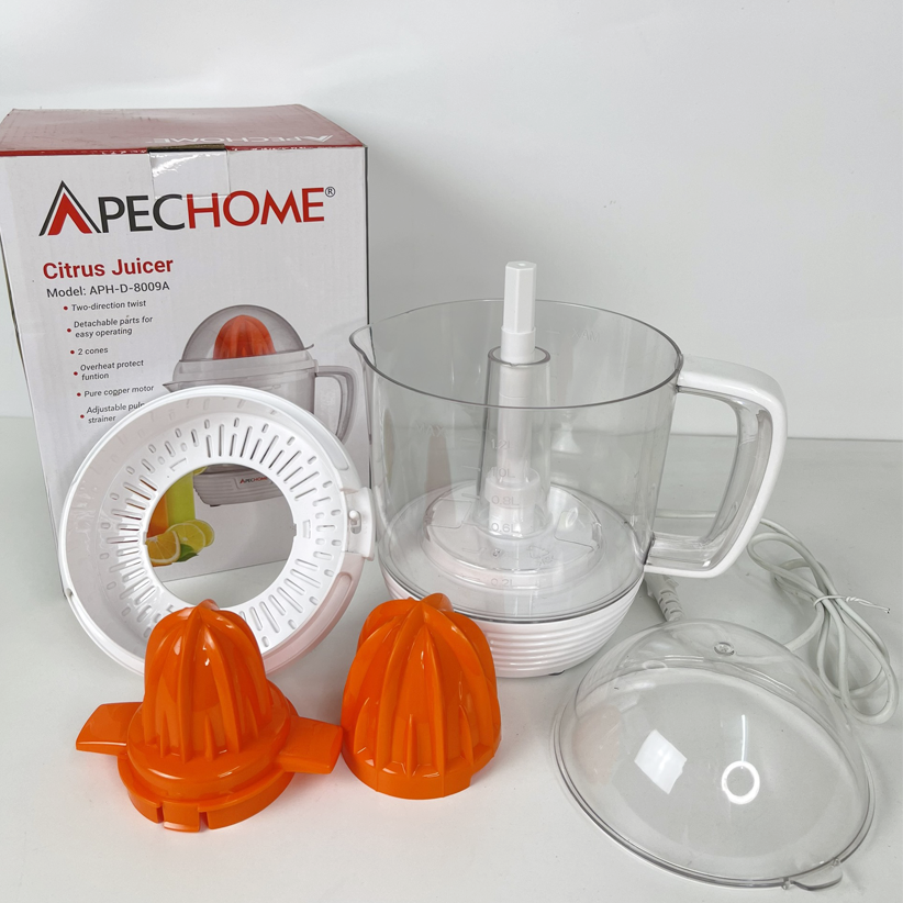 ️ MÔ TẢ SẢN PHẨM Máy vắt cam Apechome APH-D-8009A được thiết kế bền đẹp, chắc chắn. Chất liệu nhựa nhẹ, dễ vệ sinh sau khi sử dụng. Máy có dung tích 1.2 lít, công