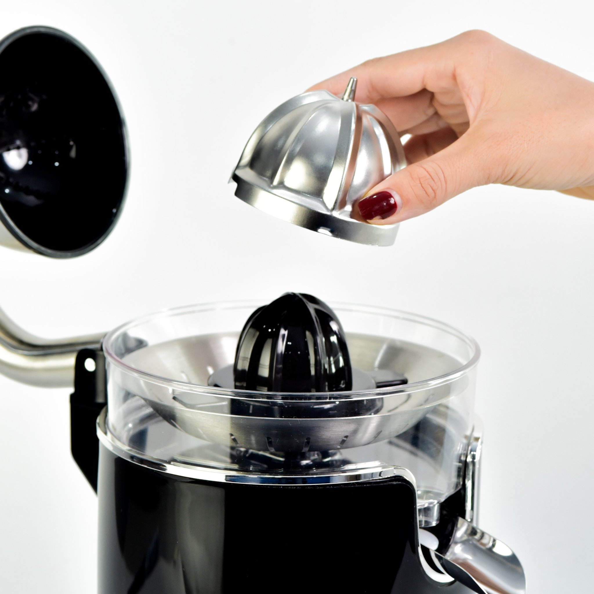 THIẾT KẾ NHỎ GỌN & TIỆN DỤNG 2 đầu vắt lớn, nhỏ linh hoạt - Vắt được đa dạng các loại hoa quả Máy vắt cam SUNHOUSE SHD5510 có thiết kế 2 đầu vắt kích