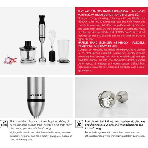 THÔNG TIN SẢN PHẨM: MÁY XAY CẦM TAY HÄFELE HS-HB800X – LINH HOẠT, MẠNH MẼ VÀ DỄ SỬ DỤNG TRONG MỌI GIAN BẾP Nhỏ gọn nhưng đa năng, máy xay cầm tay Häfele HS -