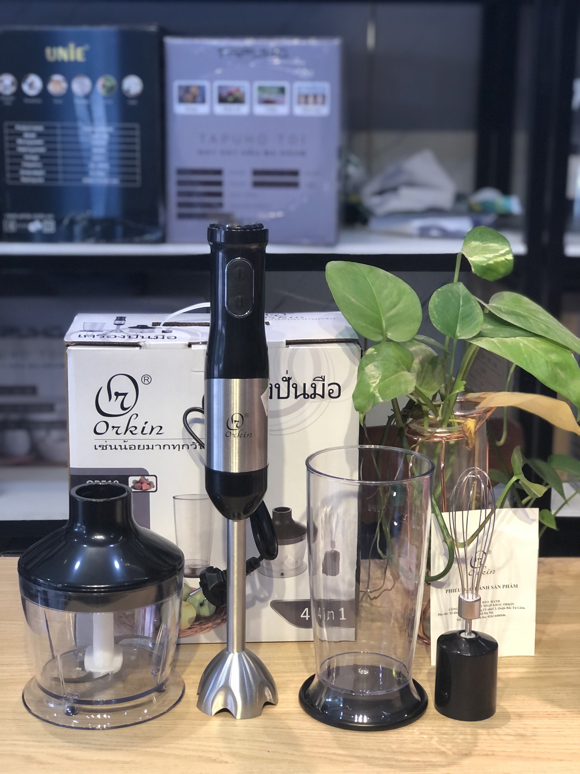 Mua tại TiktokMáy xay cầm tay đa năng 4 trong 1 Orkin Thái Lan OR519 bảo hành 12 tháng Loại: Máy xay cầm tay đa năng Loại điều khiển: Nút bấm Model: OR519 Thương hiệu: Orkin Thái Lan Công nghệ sản xuất Thái Lan Công suất: 800W Điện áp: 220V - 50Hz Kích thước đóng hộp: 35 x 30 x 20 cm Trọng lượng: 2.2 kg Dụng tích: 500ml Chất liệu: Nhựa không chứa BPA, lưỡi dao Thép không gỉ Chức năng: Máy xay sinh tố, máy xay thực phẩm, máy đánh trứng, Xay Thịt, Xay Ngũ Cốc ... kèm theo cốc đựng Tốc độ vòng quay: 15000 RPM Sản xuất tại Trung Quốc Bảo hành 12 tháng chính hãng bởi Tập Đoàn Orkin Thái Lan - Việt Nam Đặc điểm nổi bật