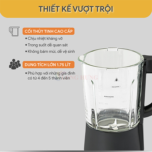 - Dung tích lớn 1,75L phù hợp với gia đình từ 3-4 người