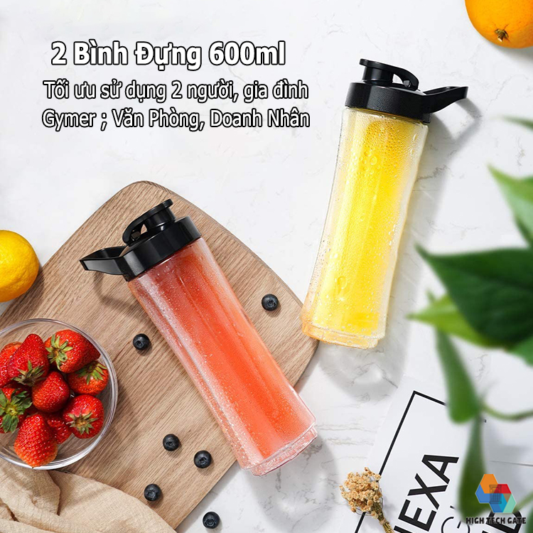 Tích hợp 2 bình đựng du lịch dung tích lớn 600ml Máy xay sinh tố Shardor PB615B với 2 bình đựng Tritan - không chứa BPA và 2 Nắp Du lịch miễn phí, tuyệt vời cho chuyến du lịch, công tác, thể thao ngoài trời, phòng tập gym hay văn phòng.