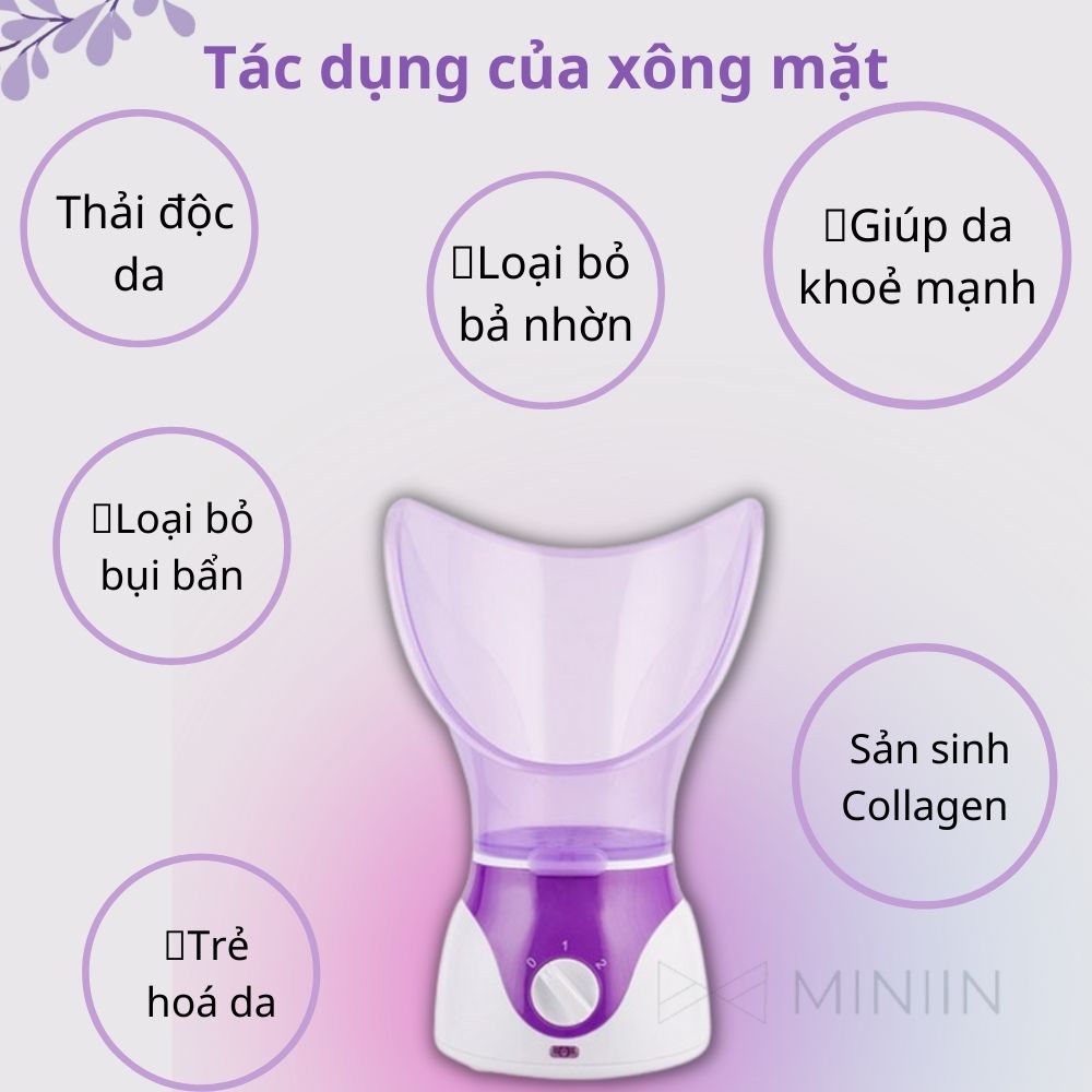 Mua tại TiktokMáy Xông Tinh Dầu Mặt Mũi Họng Mini Hàng Chính Hãng MINIIN - Xông Hơi Thảo Dược Hoa Quả Tại Nhà - An Toàn Hiệu Quả Máy Xông Hơi Mặt Tại Nhà là máy tốt nhất hiện nay mà nhà ai cũng nên có 1 chiếc ,Máy giúp chăm sóc làn da mềm mịn tăng tính đàn hồi cho da trẻ hóa làn da. Máy có bầu xông mũi, ngăn chứa thảo dược, giúp bạn cải thiện rất tốt các vấn đề về mũi, hô hấp. Với một chiếc máy xông hơi mặt nhỏ gọn phù hợp với tất cả thành viên trong gia đình và người xông có thể dễ dàng điều chỉnh lượng hơi nước xông và tinh dầu kèm theo để đạt kết quả tốt nhấ Máy Xông Hơi Mặt có công dụng nào? Máy xông hơi mặt là phương pháp làm sạch da không gây dị ứng, không gây tác dụng phụ vì không có bất cứ một chất hóa học nào khác ngoài hơi nước tinh khiết – Xông hơi giúp đuổi tà khí xâm nhập vào các đường kinh lạc gây đau nhức cơ thể. Hơi nóng từ xông hơi sẽ giúp làm giãn các mạch máu dưới da, giúp máu đến nuôi da nhiều hơn. – Làm cho các lỗ chân lông được mở ra, các tế bào da được thư giãn đồng thời độc tố trong cơ thể cũng được bài tiết ra ngoài. – Giải quyết tận gốc nguyên nhân gây mụn, trứng cá và viêm nhiễm trên da mặt; Làm sạch da mặt một cách triệt để. – Có thể kết hợp với hương liệu thiên nhiên như hoa quả, thảo dược, tinh dầu hoặc dược phẩm, mỹ phẩm cùng liệu pháp massage sẽ tạo nên tác động kép, giúp cho việc hấp thụ tốt nhất các sản phẩm chăm sóc da làm cho da mềm mịn, tăng tín đàn hồi, trẻ hóa làn da mang lại cho bạn vẻ đẹp rạng ngời, căng tràn sức sống. – Máy tạo độ ẩm cho da , giúp bạn có được làn da cân bằng , không còn bị da khô , không còn bị da nhờn Máy Xông Hơi Mặt còn giúp cơ thể phân hủy một lượng mỡ nhất định để điều nhiệt. Nếu bạn có một thực đơn ăn kiêng vừa phải cùng với xông hơi thì bạn vẫn có thể giảm nhẹ nhàng mà không bị nhăn da. Ưu điểm của Máy Xông Hơi Mặt – Máy là một liệu pháp chăm sóc da hoàn toàn thiên nhiên theo truyền thống y học cổ truyền của dân tộc. – Máy Xông Hơi Mặt tại nhà giúp chị em có thể xông hơi mặt như ở thẩm mỹ viện bất cứ khi nào. Luồng hơi nước tinh khiết và ấm áp sẽ thấm rất sâu vào các lỗ chân lông , đẩy các chất cặn bã ra ngoài da. Nhờ vậy, da phục hồi nhanh chóng và lại trở nên căng mịn – Máy đặc biệt rất thích hợp cho các chị em phải tẩy trang hằng ngày. Máy xông hơi mặt phù hợp với tất cả mọi loại da, giúp bạn có được làn da sạch sẽ, láng mịn, không còn mụn cám – Máy giúp thải độc cho da mặt. Nó rất hiệu quả trong việc điều trị nám da, sạm da do mỹ phẩm, tái tạo lớp da mới đẹp hơn – Có thể xông hơi để làm sạch mũi họng; – Thiết kế đơn giản, hợp lý, phù hợp với người Á Đông Thông số kỹ thuật Máy Xông Hơi Mặt