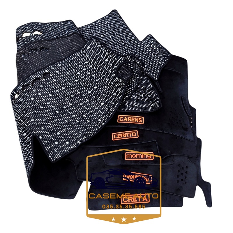 Đặc điểm: Chất liệu da cao cấp, Có đế chống trượt, Màu da vân các bon đen mịn màng Chất Thảm chống nắng taplo Da lượng như hình