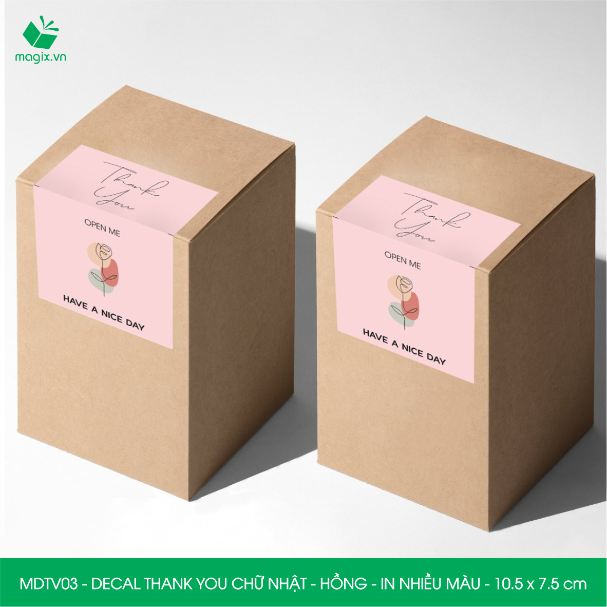 ✨MDTV03 - 10.5x7.5 cm - 1000 Decal Thank you hình chữ nhật dán hộp carton, Label Thank you, tem nhãn cảm ơn có sẵn keo dán niêm phong gói hàng