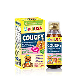 MediUSA COUGFY THÀNH PHẦN CẤU TẠO: Trong 10ml có chứa: - Mật Ong 320 mg - Chiết xuất Hoa cúc La Mã (German Chamomile Extract) 50 mg - Chiết xuất Thường xuân (Hedera Helix Extract)