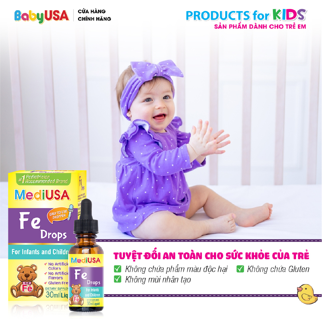 ✨MediUSA Fe Drops - Thực Phẩm Chức Năng cung cấp Sắt, tái tạo hồng cầu cho trẻ, tăng sức đề kháng - Hàng chính hãng