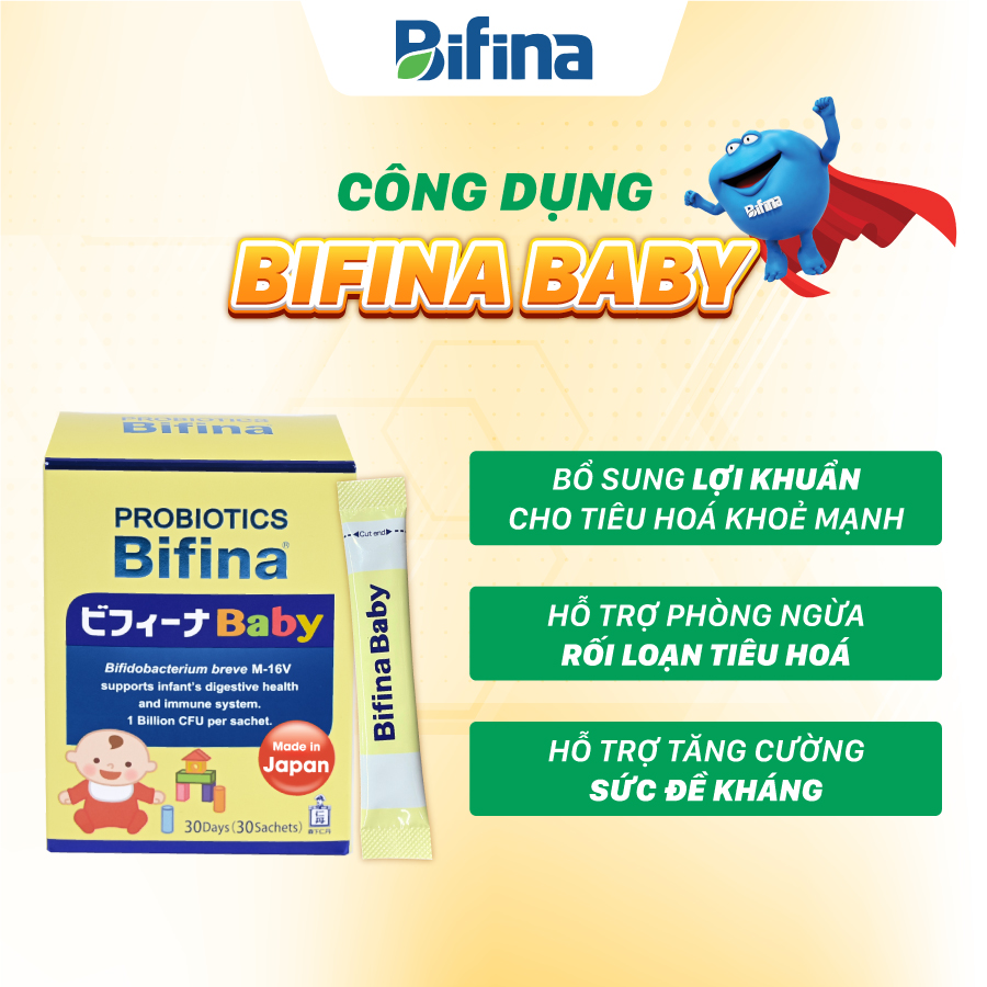 Hỗ trợ tiêu hoá khoẻ, tăng đề kháng cho bé - Men vi sinh Bifina Baby Nhật Bản- Hộp 30 gói Đối tượng sử dụng: Dành cho trẻ em từ 0 tháng tuổi cần bổ