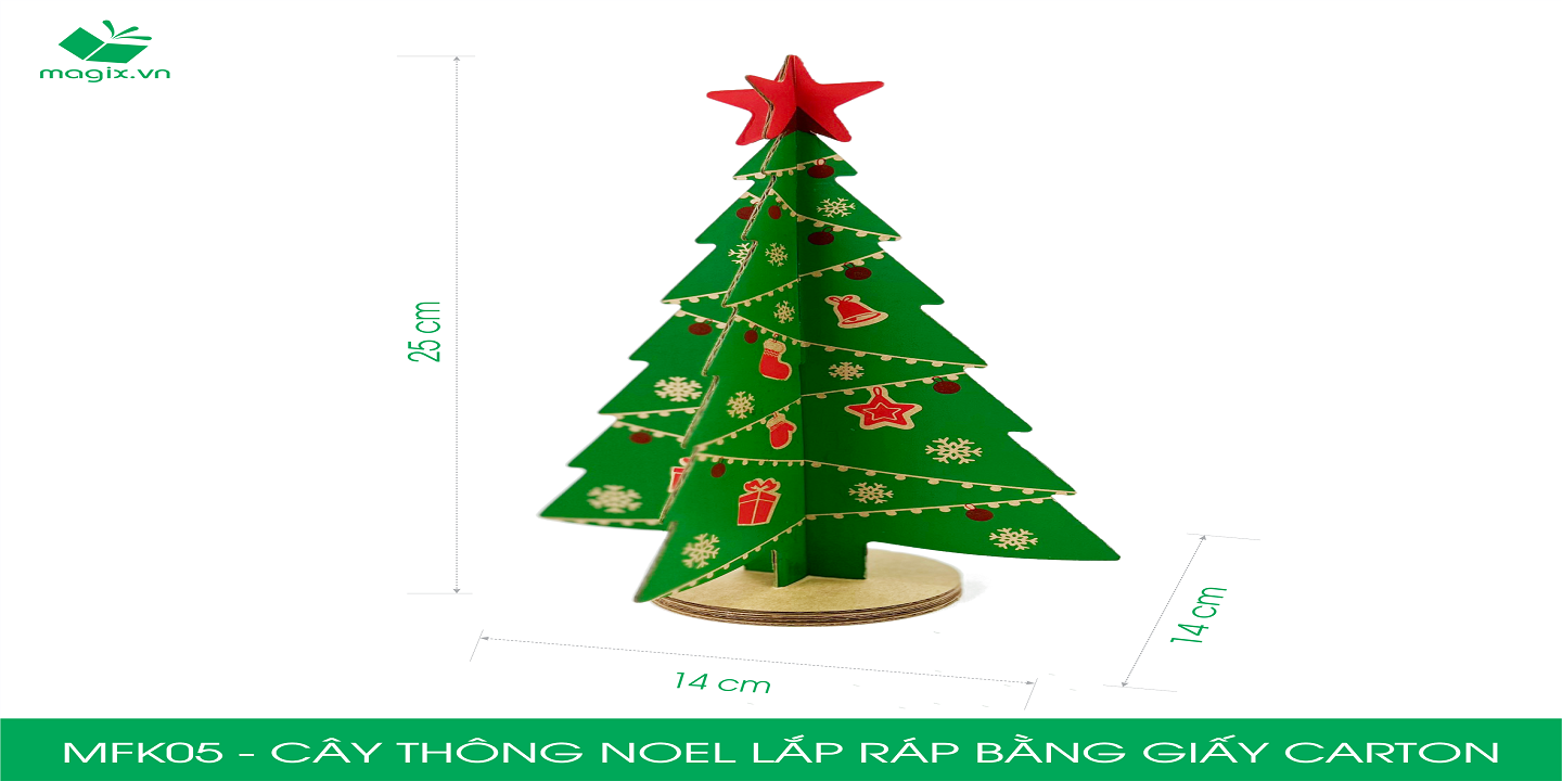 ✨MFK05 - 14x14x25 cm - Cây thông noel lắp ráp bằng giấy carton - Cây thông noel trang trí Giáng Sinh