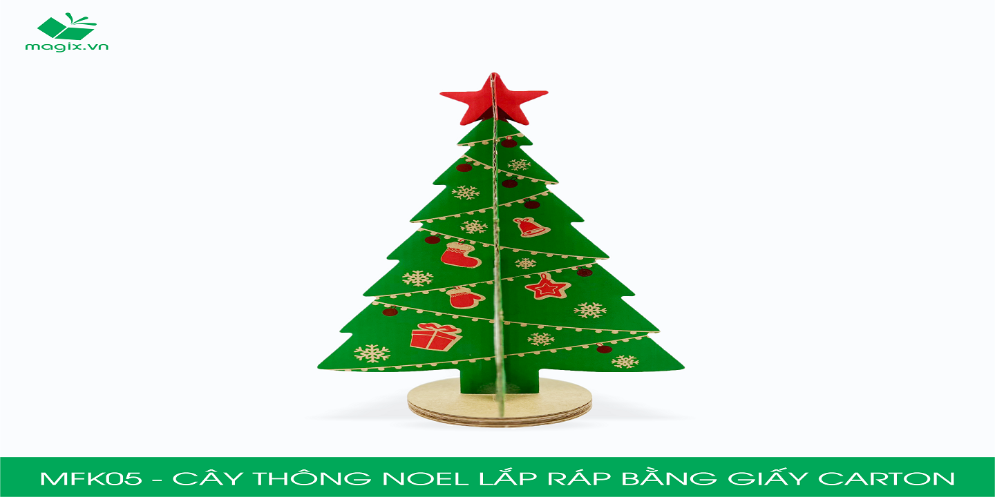 Cây thông Noel lắp ráp bằng giấy carton là một sản phẩm trang trí lý tưởng cho mùa Noel. Bạn có thể đặt sản phẩm trên bàn làm việc, ngăn tủ, kệ gỗ để trang trí. Với thiết kế đơn giản được in ấn cùng với sắc đỏ và xanh lá, sản phẩm sẽ giúp cho không gian làm việc/ trang trí của bạn đầy ấn tượng; hoặc bạn có thể dùng để làm quà tặng ý nghĩa cho các bé/ đồng nghiệp mùa Giáng sinh. ĐẶC ĐIỂM: Dễ lắp ráp: Thiết kế đơn giản chỉ với 2 bước lắp ráp cơ bản, bạn đã có 1 sản phẩm là cây thông giấy dễ thương và xinh xắn để trang trí. Tiết kiệm chi phí: Được làm từ giấy carton và quy trình sản xuất đơn giản; sản phẩm được sản xuất với giá thành rẻ hơn nhiều loại chất liệu khác. Vật liệu chịu lực cao: Sử dụng giấy carton thẩm mỹ và gia lực nhằm giúp sản phẩm vừa đẹp hơn và vừa bền hơn. Thân thiện môi trường: được làm từ giấy nguyên sinh, có khả năng tái chế 100%; giúp bảo vệ môi trường. CÁCH SỬ DỤNG: Lắp ráp sản phẩm theo video hướng dẫn.  Trang trí sản phẩm, decor bàn học, góc làm việc. Quà tặng mùa Giáng sinh   QUY CÁCH KỸ THUẬT Mã sản phẩm: MFK05  Kiểu dáng: Hình cây thông Kích thước sản phẩm: 14x14x25  cm Kích thước đóng gói: 35x25 cm   Chất liệu: Carton sóng E - 3 lớp cao cấp Màu sắc: Nhiều màu   LƯU Ý:  Bảo quản sản phẩm nơi khô ráo, sạch sẽ tránh tiếp xúc nơi có độ ẩm cao.