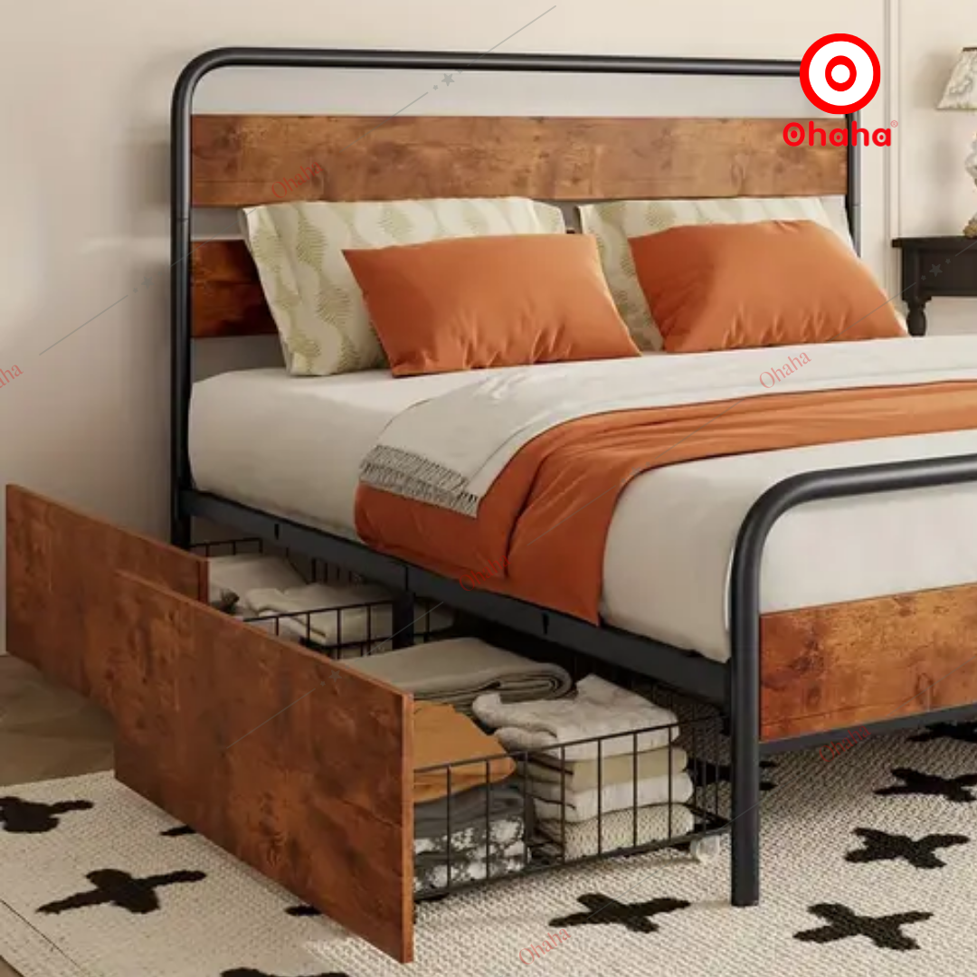 Giường ngủ sắt hiện đại Ohaha - GS009 mang đến sự an toàn được làm từ những thanh sắt dày dặn, vuông vức tạo cảm giác chắc chắn. Thiết kế rỗng bên dưới khung giường mang lại nhiều không gian chứa đồ, bạn có thể dùng để đựng quần áo hay chăn nệm trái mùa giúp tiết kiệm diện tích.