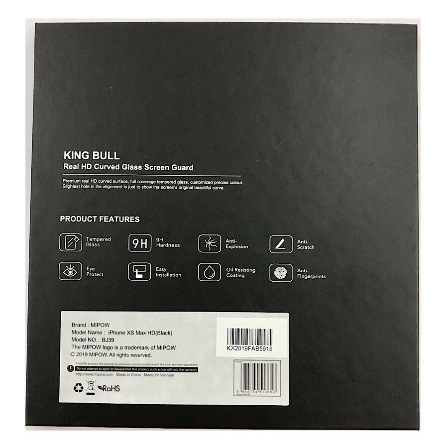 Miếng dán cường lực iPhone XS Max MIPOW KING BULL 3D full màn hình