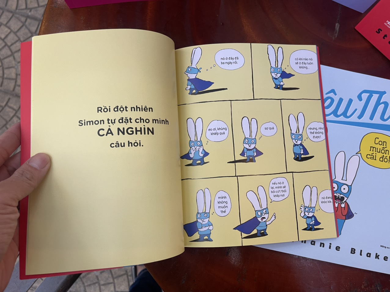 Vẫn là chú thỏ con Simon ấy lúc thì mè nheo vòi vĩnh khi đi siêu thị, lúc thì nhút nhát bướng bỉnh khi đi khám răng, lúc lại không biết chia sẻ khi đòi bố mẹ cho em bé quay trở lại bệnh viện để em bé khỏi chiểm mất không gian của mình.