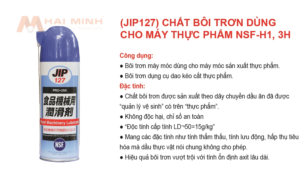 Mua tại TiktokMỡ bôi trơn máy móc thực phẩm Jip127 Mỡ bôi trơn dùng cho máy thực phẩm là loại mỡ dùng để bôi trơn cho các bộ phẩn, chi tiết máy; được sử dụng trong dây chuyền chế biến thực phẩm, bao bì đóng gói và dược phẩm. Độ an toàn của mỡ bôi trơn đối với thưc phậm được quy định theo tiêu chuẩn NSF. Công dụng của mỡ bôi trơn máy móc thực phẩm JIP127