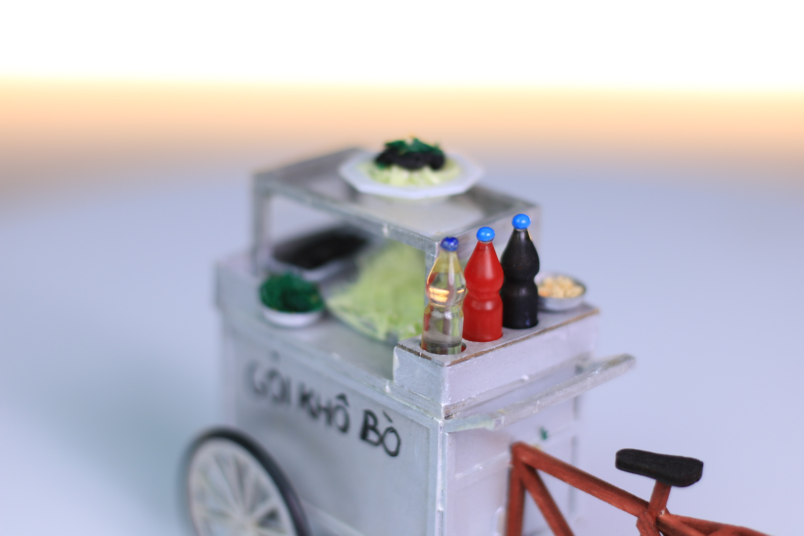 Mô Hình Xe Hàng Rong Thu Nhỏ Bằng Gỗ Ở Sài Gòn - Xe Gỏi Khô Bò - HR15 KHÁCH LƯU Ý - SẢN PHẨM TỰ SƠN VÀ LẮP RÁP - SẢN PHẨM CHƯA BAO GỒM KEO