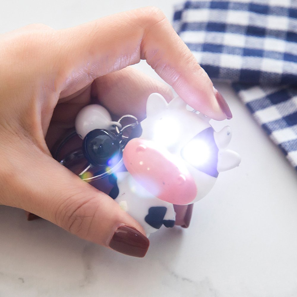 ✨Móc khóa con bò sữa cute mắt có đèn phát sáng, phát ra tiếng kêu ngộ nghĩnh