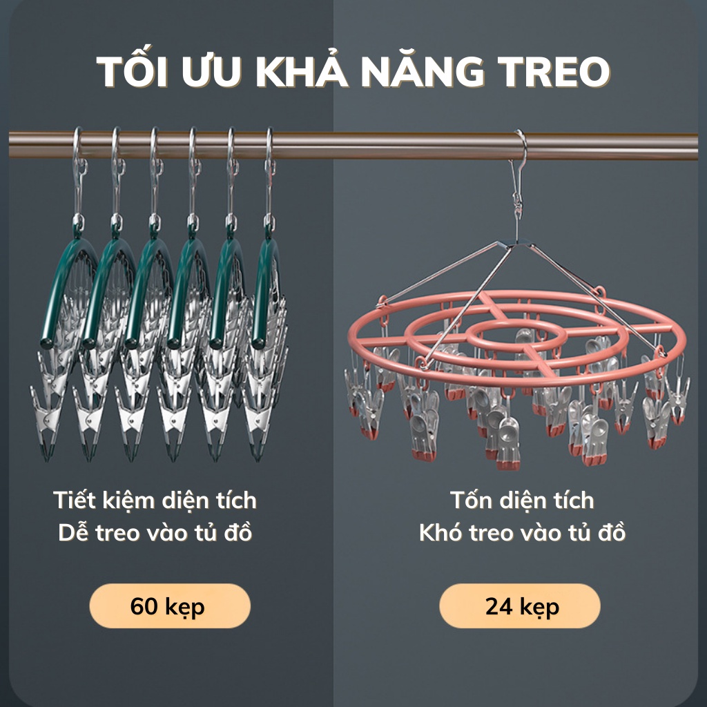 Có khóa gài chắc chắn; gài vào sào phơi, đảm bảo không rớt móc dù có gió lớn.