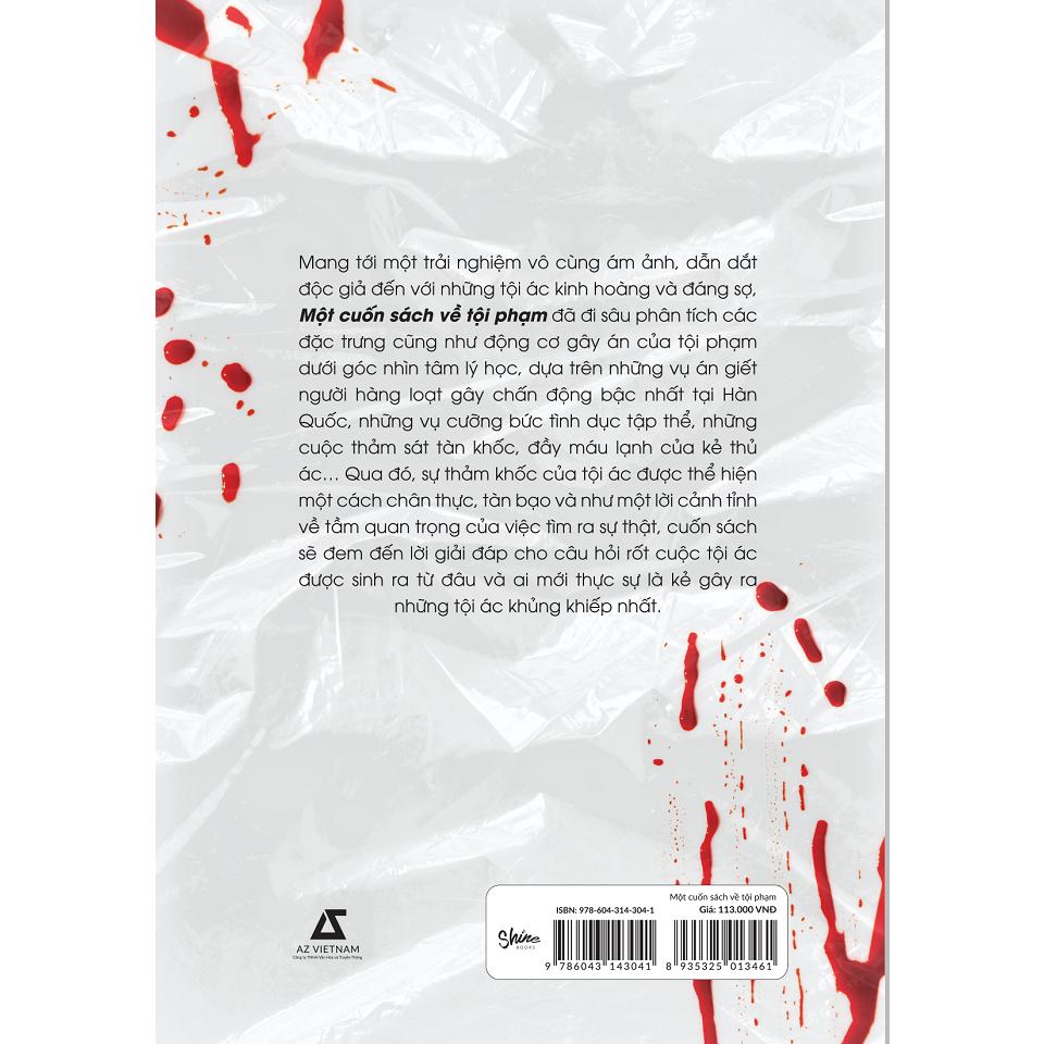 Mang tới một trải nghiệm vô cùng ám ảnh, dẫn dắt độc giả đến với những tội ác kinh hoàng và đáng sợ, Một cuốn sách về tội phạm đã đi sâu phân tích các đặc trưng cũng như động cơ gây án của tội phạm dưới góc nhìn tâm lý học, dựa trên những vụ án giết người hàng loạt gây chấn động bậc nhất tại Hàn Quốc, những vụ cưỡng bức tình dục tập thể, những cuộc thảm sát tàn khốc, đầy máu lạnh của kẻ thủ ác… Qua đó, sự thảm khốc của tội ác được thể hiện một cách chân thực, tàn bạo và như một lời cảnh tỉnh về tầm quan trọng của việc tìm ra sự thật, cuốn sách sẽ đem đến lời giải đáp cho câu hỏi rốt cuộc tội ác được sinh ra từ đâu và ai mới thực sự là kẻ gây ra những tội ác khủng khiếp nhất.