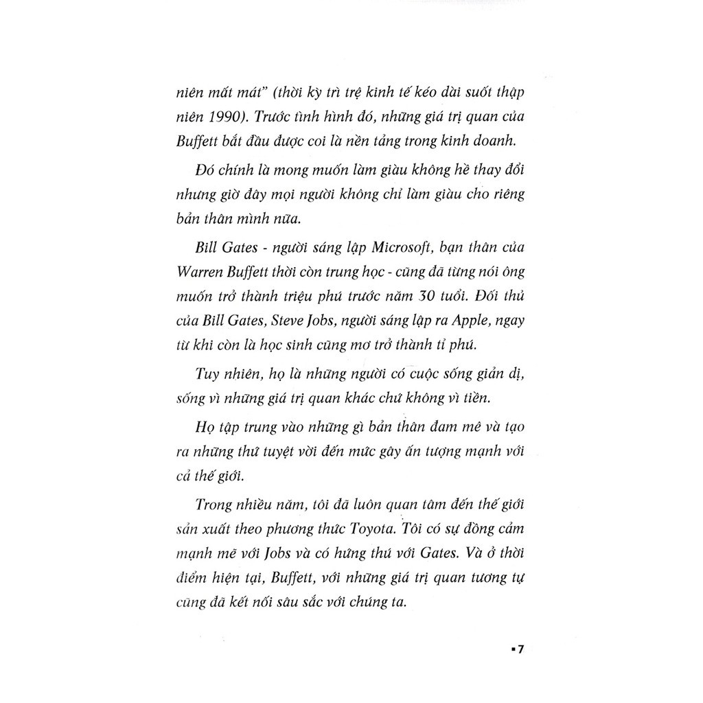 Thông qua những câu nói đáng nhớ của chính Buffett, sổ tay quản lý thực tế này đã chia sẻ những kiến thức quý báu về cách giao tiếp, đối xử công bằng với nhân viên lẫn cổ đông; khả năng quản trị kinh doanh có trách nhiệm; hành vi đạo đức; thái độ kiên nhẫn và tính kiên trì; biết thừa nhận sai lầm; có niềm đam mê dành cho công việc; và nhiều khía cạnh khác nữa.