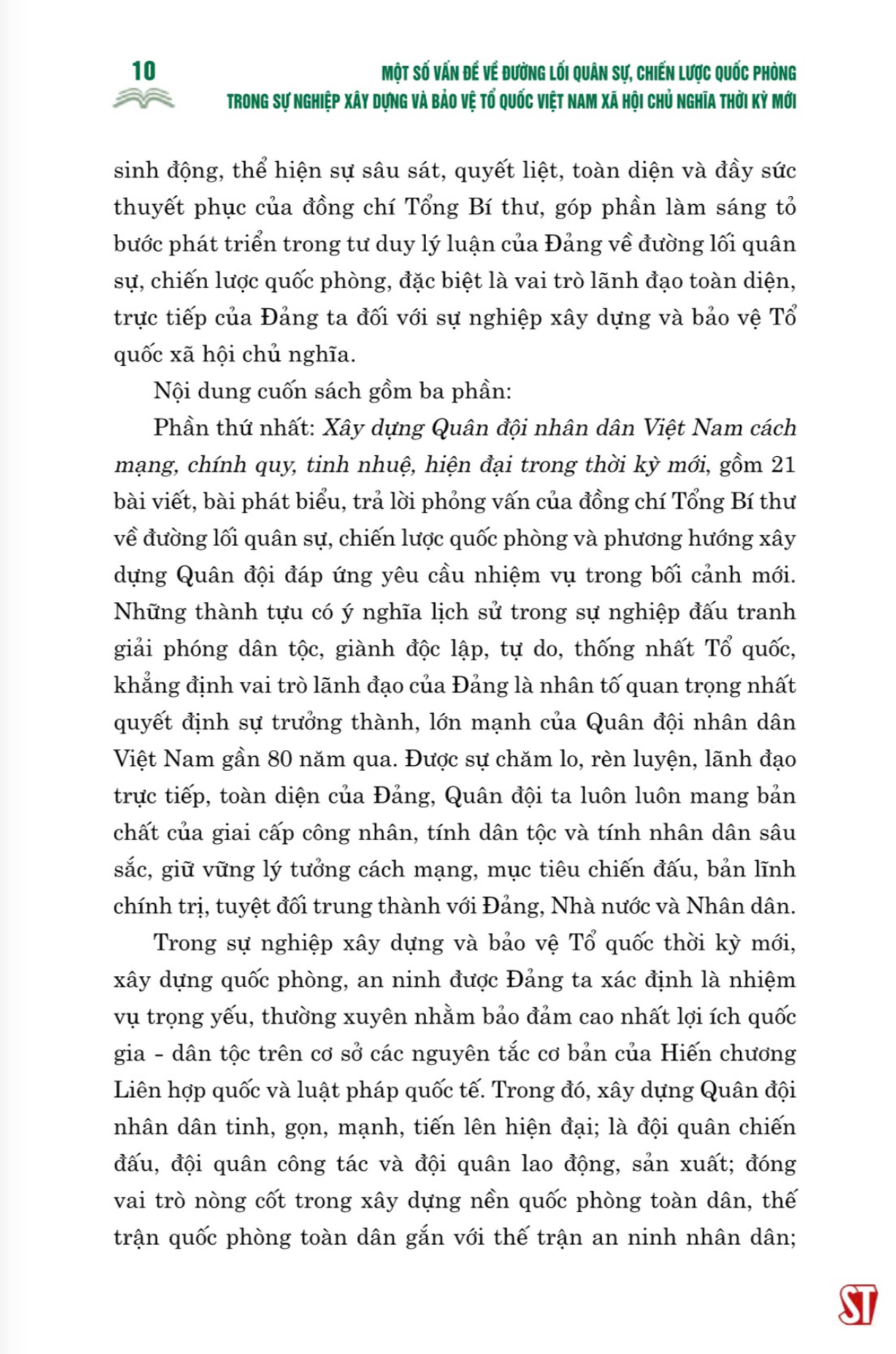 Cuốn sách tuyển chọn các bài nói, bài viết, bài phát biểu, trả lời phỏng vấn, thư, điệ của đồng chí Tổng Bí thư Nguyễn Phú Trọng, thể hiện tư tưởng nhất quán, xuyên suốt