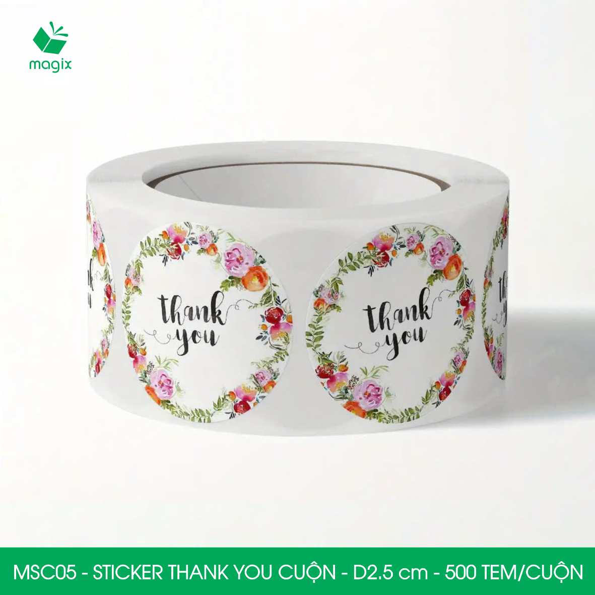 ✨MSC05 - D2.5 cm - 1 Cuộn 500 sticker thank you tròn, nhãn dán thank you, tem dán cảm ơn