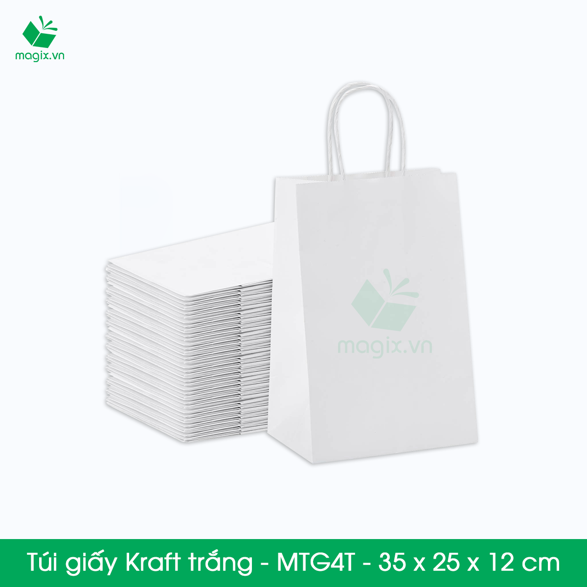 Túi Giấy Kraft Trắng Sản phẩm được làm bằng giấy kraft trắng, bền về cơ học, dai, chống thấm tốt, thân thiện môi trường do có khả năng phân hủy sinh học nên được tái sinh