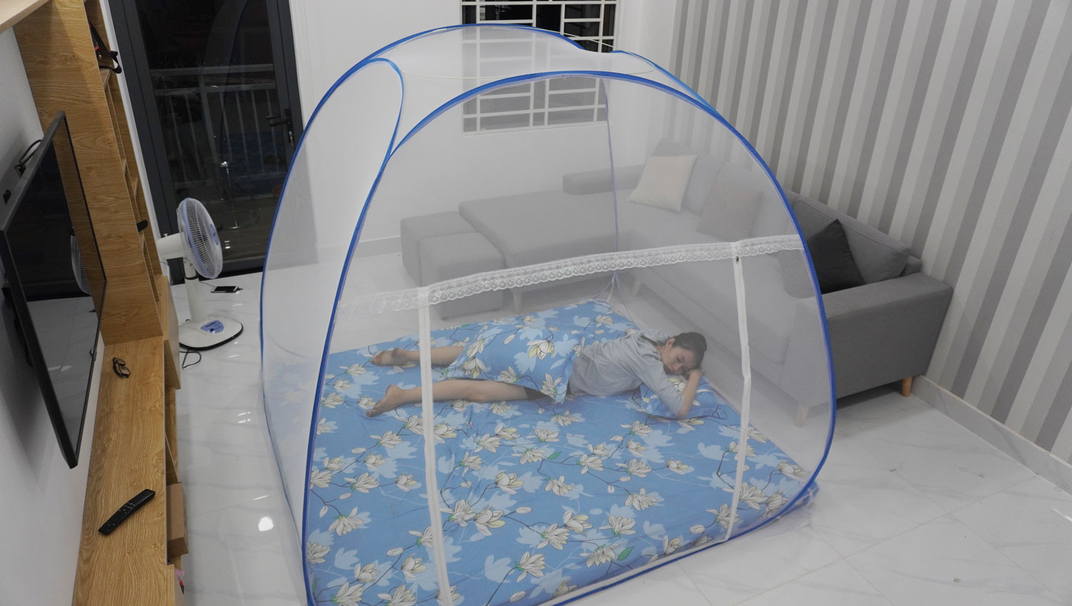 • An toàn : Mùng chụp ở phần chân được làm từ lớp vải dù để khi ngủ chân tay có CHẠM mùng thì vẫn KHÔNG BỊ muỗi cắn, nhà có trẻ con thì bố mẹ sẽ cực kì yên tâm