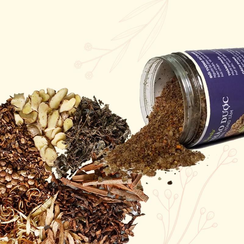 - Thành phần: 100% Thảo Mộc Tự Nhiên truyền thống của Việt Nam gồm gừng, ngải cứu, hồi, quế, lá lốt, hạt gấc, tinh dầu Tràm tự nhiên và muối ngâm chân.