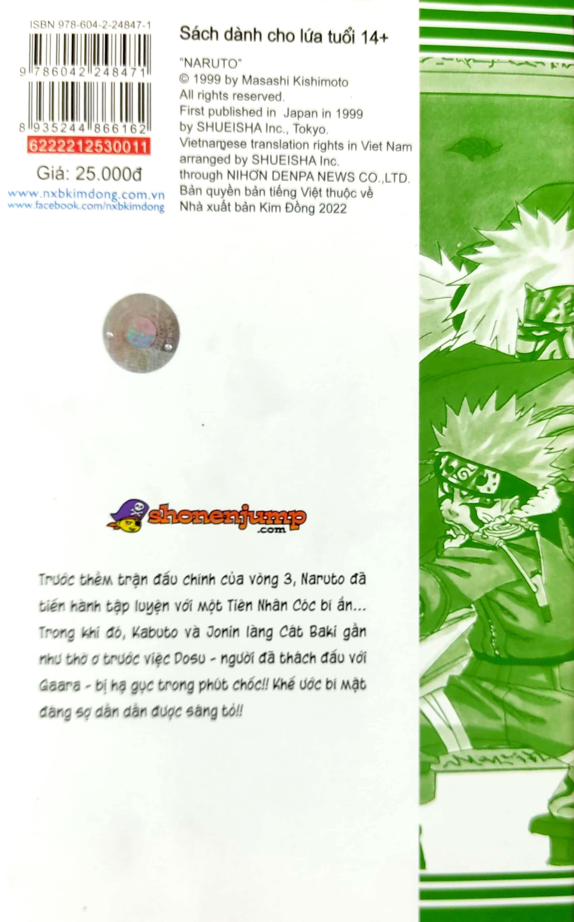 Mua tại TiktokNaruto - Tập 11: Nhận Tui Làm Đệ Tử Nha!? (Tái Bản 2022) Trước thềm trận đấu chính của vòng 3, Naruto đã tiến hành tập luyện với một Tiên Nhân Cóc bí ẩ Trong khi đó, Kabuto và Jonin làng Cát Baki gần như thờ ơ trước việc Dosu - người đã thách đấu với Gaara - bị hạ gục trong phút chốc!! Khế ước bí mật đáng sợ dần dần được sáng tỏ!! MASASHI KISHIMOTO Dạo này, người phụ trách dẫn tôi đi ăn nhiều tiện ngon lắm. Và từ lúc cha sinh mẹ đẻ tới giờ thì đây là lần đầu tôi được ăn cá nóc. Phải nói là trên cả tuyệt vời! Lần tới mà có đi ăn nữa, chắc chắn tôi sẽ cắm đũa lên đĩa cá nóc và quay 360 độ rồi mới ăn!