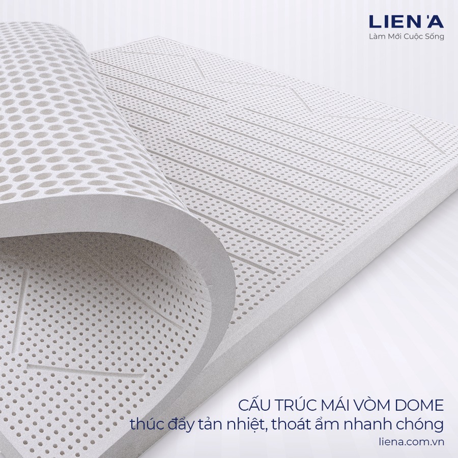 Nệm cao su thiên nhiên LIÊN Á L'A DOME COOL - cao 10cm- Bảo hành 12 năm Kết cấu siêu bền - Nâng đỡ hoàn hảo - Thoáng mát tối ưu. Ứng dụng kết cấu