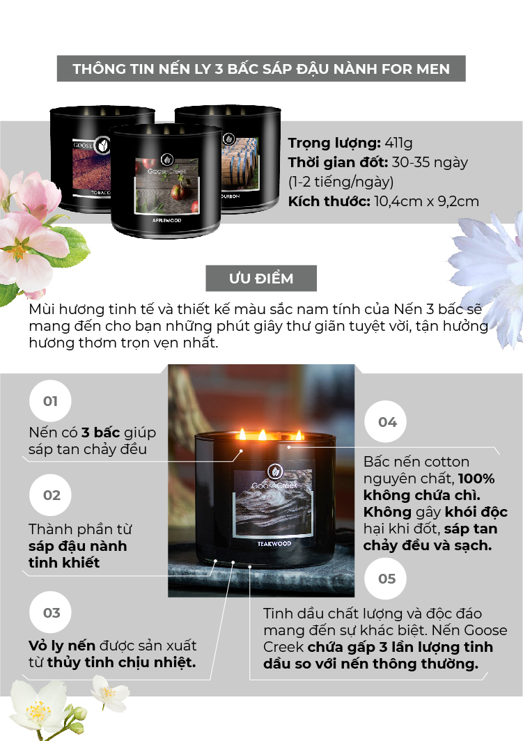 ✨Nến ly 3 bấc sáp đậu nành For Men Goose Creek (411g) - Guilty