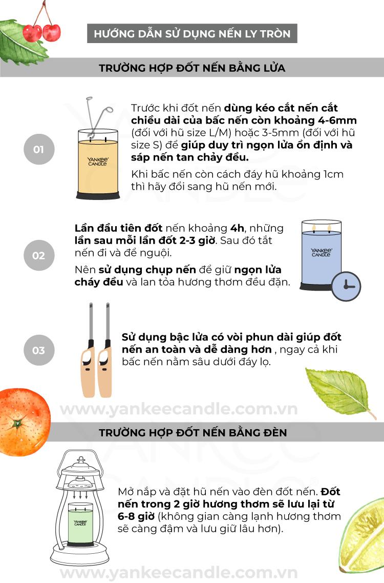 Kích thước: đường kính (D) x chiều cao (H): 5 x 5 cm Thời gian cháy 12 giờ liên tục. Sử dụng nguyên liệu hoàn toàn nhập khẩu. Sản phẩm cháy không khói, rất an