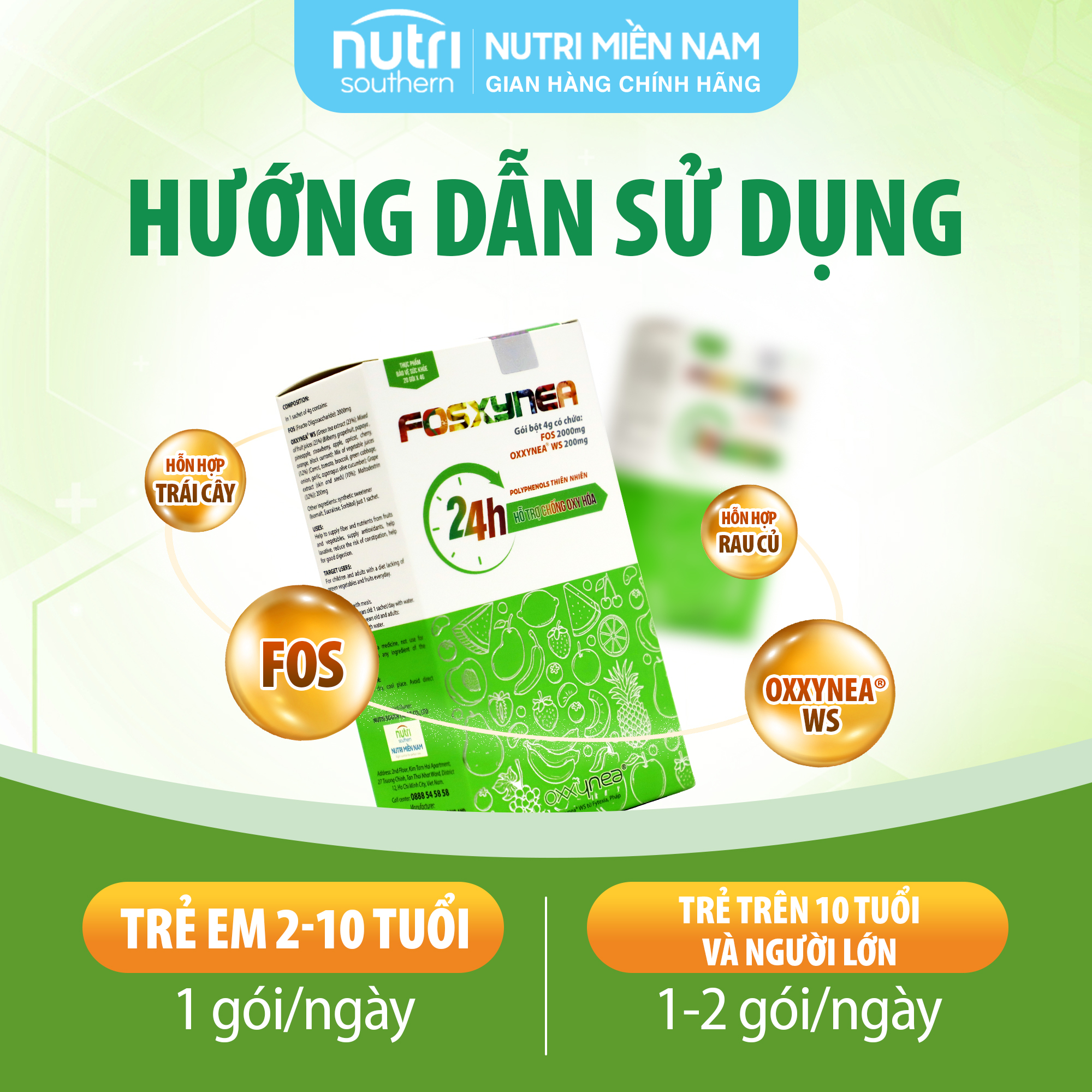 ✨Ngân Hàng Chất Xơ Từ Rau Củ Quả FOSXYNEA - Chống oxy hóa, nhuận tràng và hạn chế táo bón (hộp 20 gói)