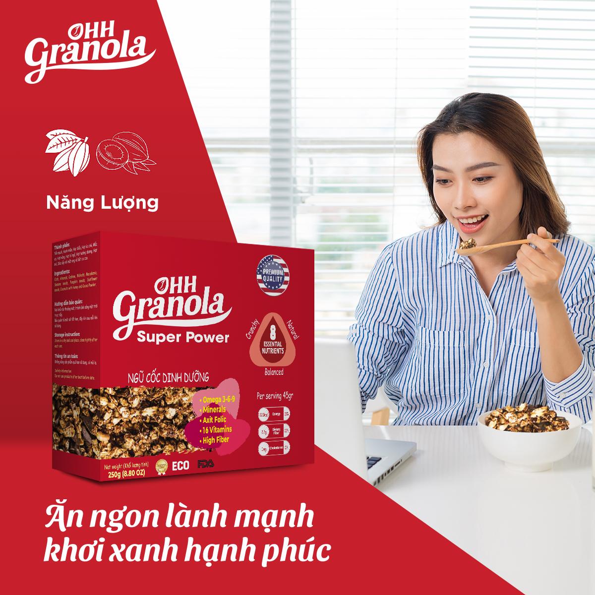 Ngũ Cốc OHH Granola – Dòng Super Power chocolate năng lượng, ngũ cốc dinh dưỡng - 0972 999 370