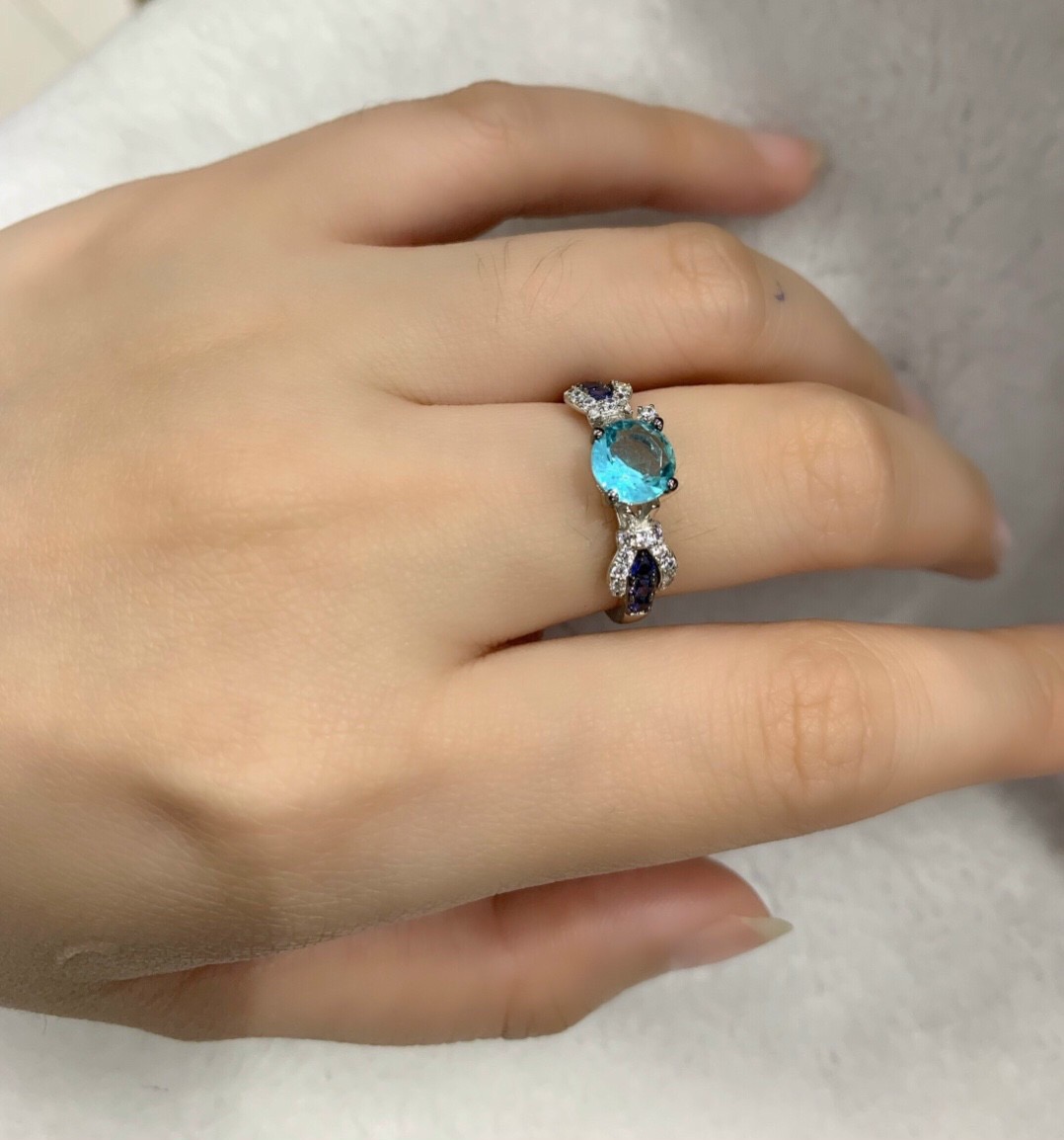 ĐẤU GIÁ: NHẪN BẠC CAO CẤP 925 ĐÍNH ĐÁ BLUE ZIRCON THIÊN NHIÊN