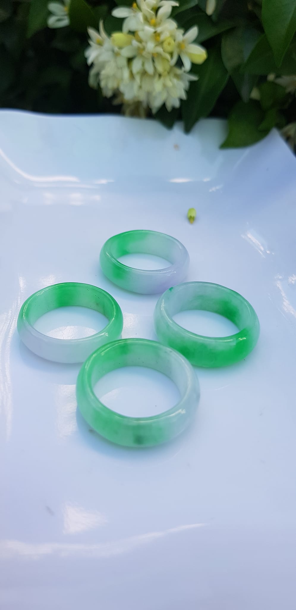 Mua tại TiktokNhẫn đeo tay nữ đá cẩm thạch tự nhiên Màu xanh lý tươi trắng bóng rất đẹp Nhẫn Ni 17mm x cao 6mm/7mm ạ